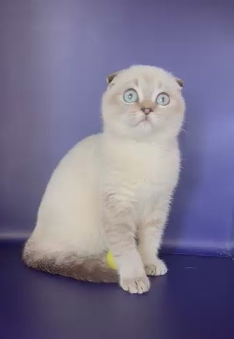 Almaz is a stunning Scottish Fold male showcasing the rare chocolate ticked tabby pointed pattern. This distinctive coloration features warm chocolate tones with subtle tabby markings and elegant point coloring, creating a sophisticated appearance. Scottish Folds are renowned for their unique folded ears, sweet temperament, and affectionate nature, making them exceptional companions. Almaz combines breed excellence with striking aesthetics, offering both visual appeal and the loving personality Scottish Folds are celebrated for. An outstanding choice for discerning cat enthusiasts seeking a premium feline companion.