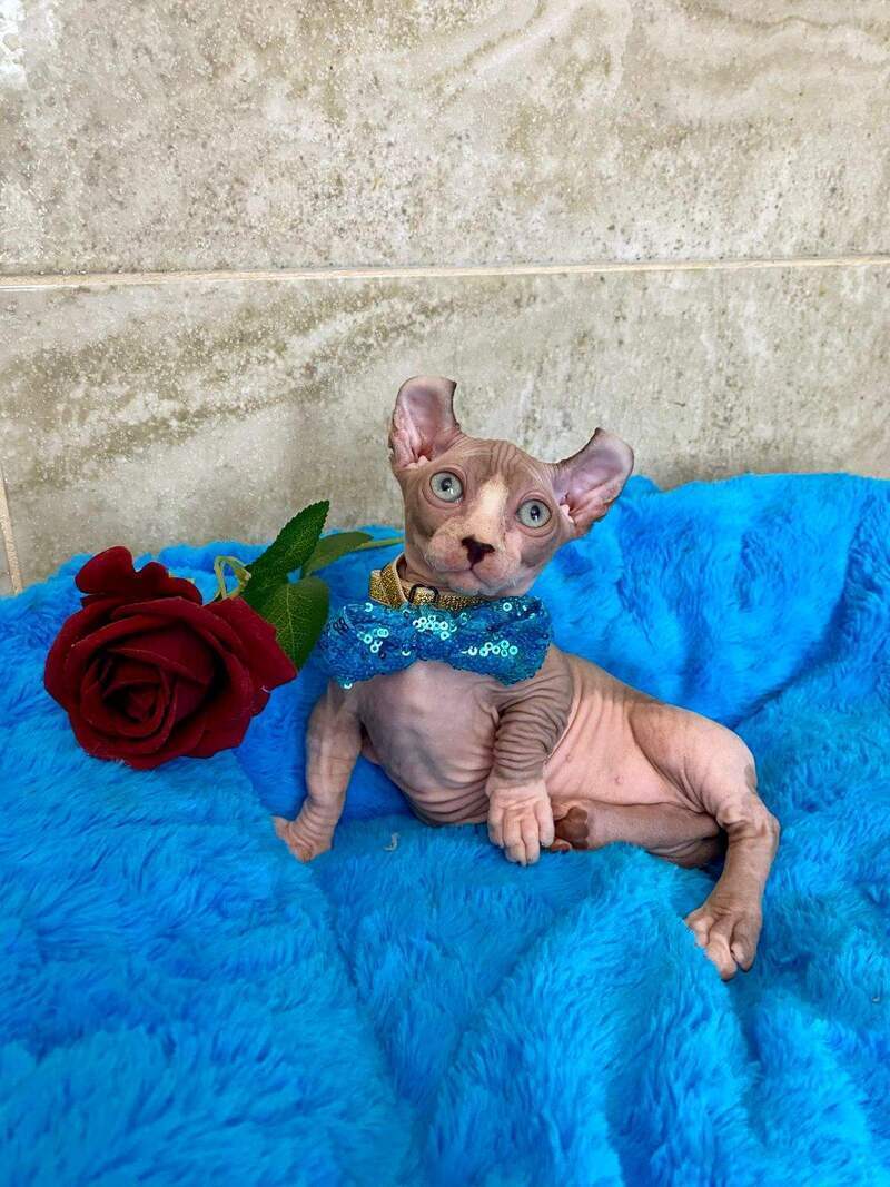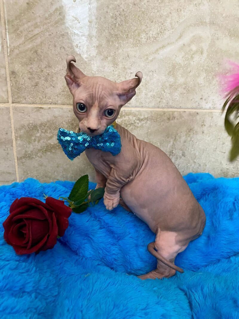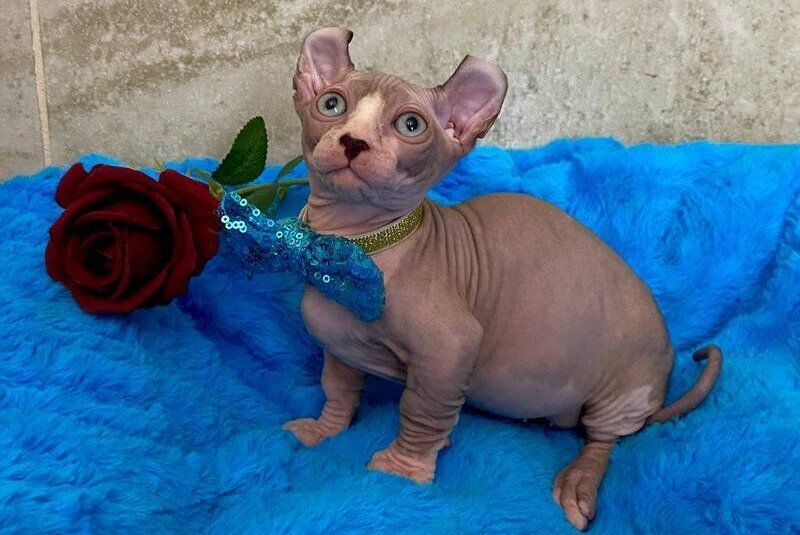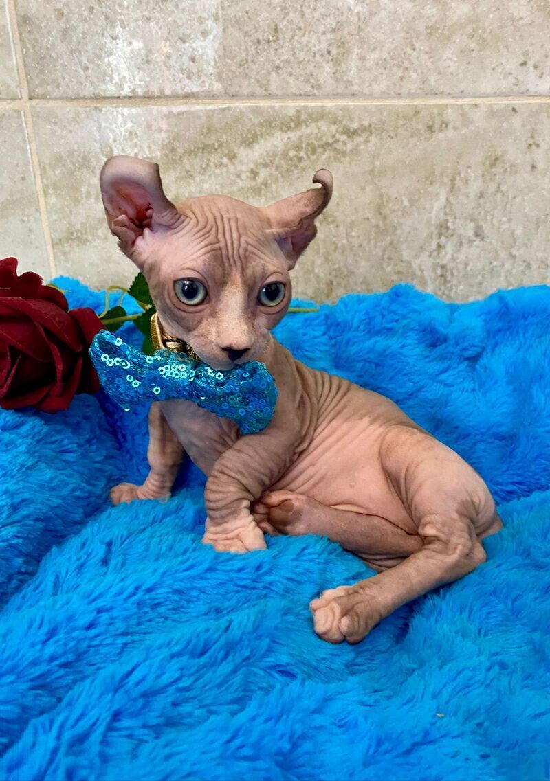 Antuan is a male Dwelf cat distinguished by his striking black bicolour coat, combining sleek dark patches with contrasting lighter areas. This breed is known for its unique curled ears, which enhance its distinctive appearance while maintaining an affectionate and playful temperament. Ideal for enthusiasts seeking a rare and elegant companion, Antuan embodies both the aesthetic charm and engaging personality typical of the Dwelf breed.