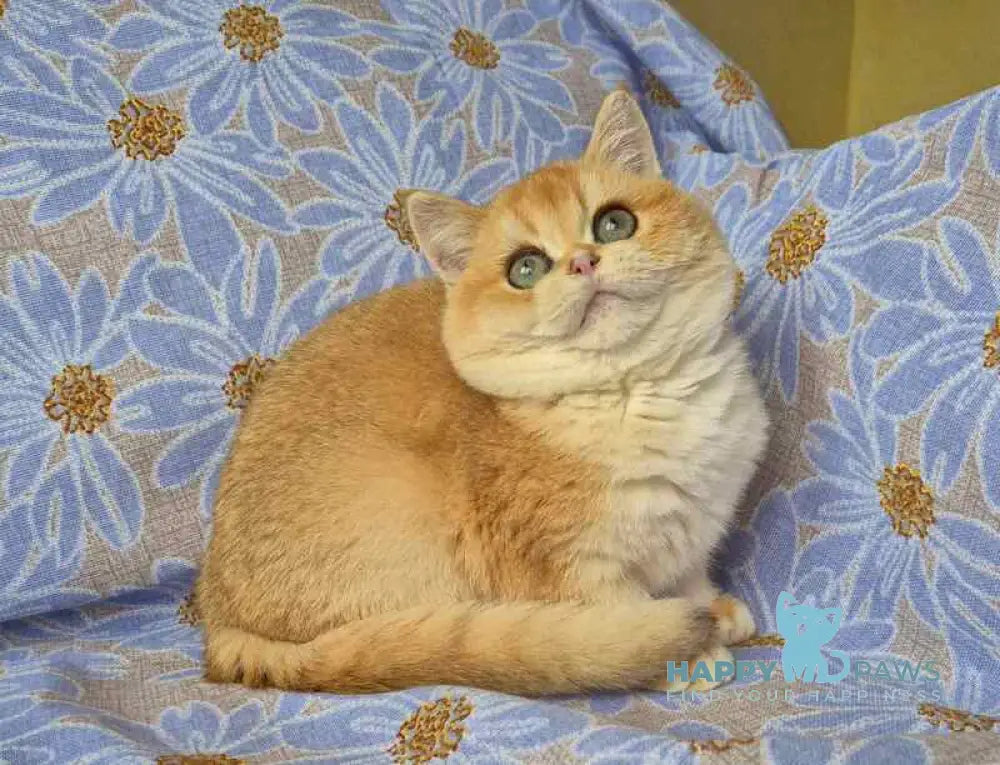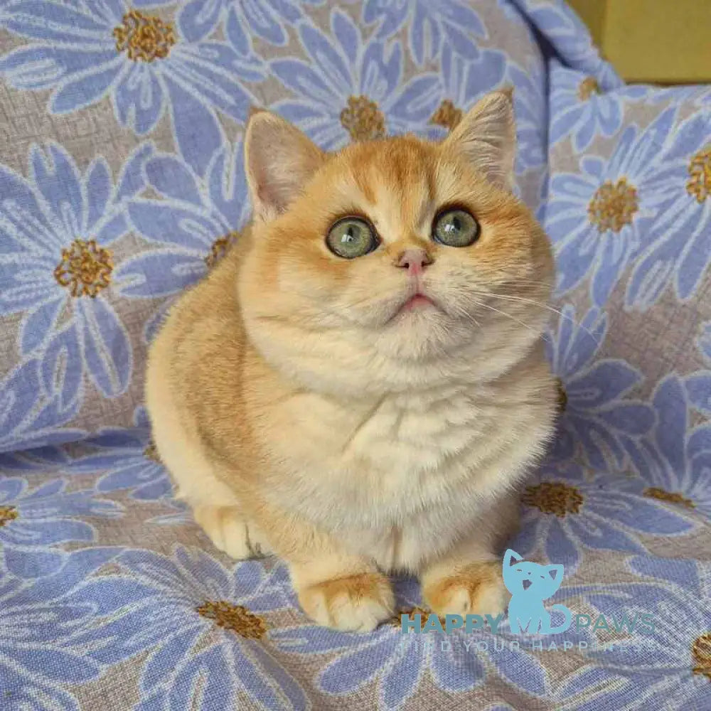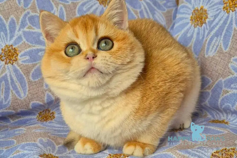Apelsin is a stunning Scottish Straight male showcasing the rare black golden chinchilla coat pattern. This distinctive coloring features deep black tipping over a warm golden undercoat, creating a luxurious, shimmering appearance. Scottish Straights are known for their calm, affectionate temperament and adaptability to various living environments. Apelsin combines the breed's characteristic round face and gentle expression with striking visual appeal, making him an exceptional choice for those seeking a beautiful, even-tempered companion with a truly unique aesthetic.