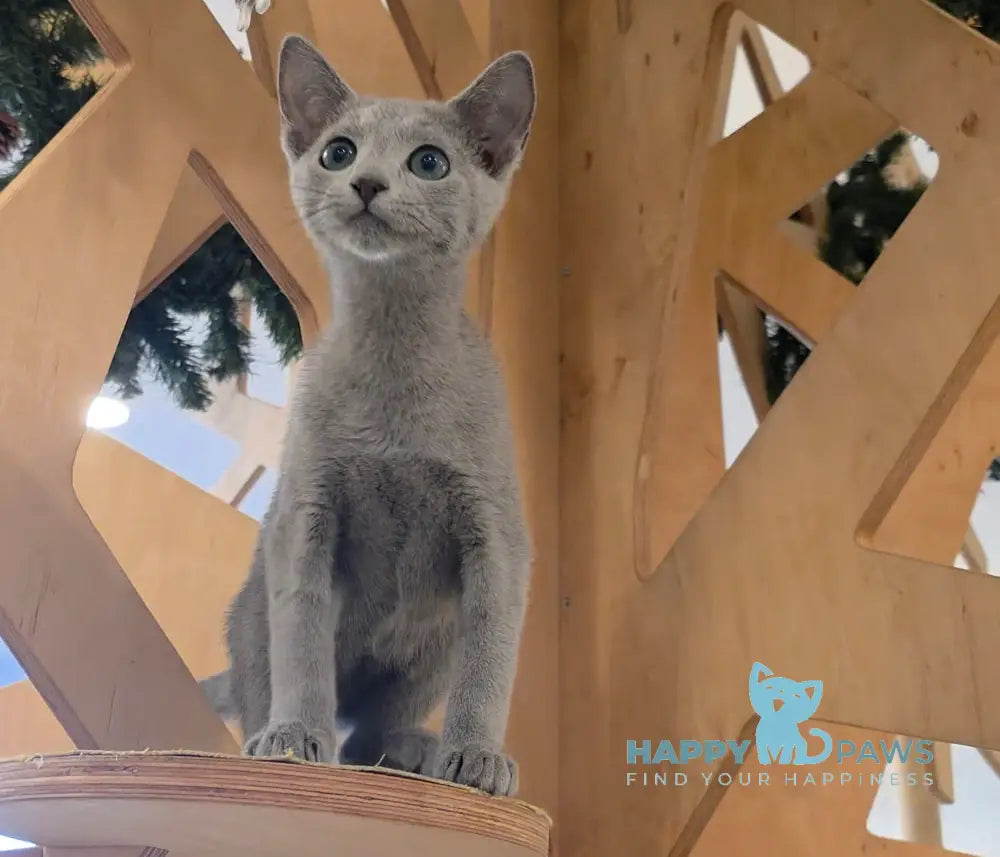 Meet Apollo, a stunning Russian Blue male kitten with a luxurious silvery-blue coat and striking green eyes. This breed is renowned for its intelligence, gentle temperament, and quiet nature, making Apollo an ideal companion for discerning cat enthusiasts. Russian Blues are known for their loyalty, playful curiosity, and adaptability to various living environments. Apollo combines the breed's characteristic elegance with a calm, affectionate personality. Whether you're seeking a sophisticated feline companion or a show-quality kitten, Apollo embodies the refined qualities that make Russian Blues highly sought after by experienced cat owners.