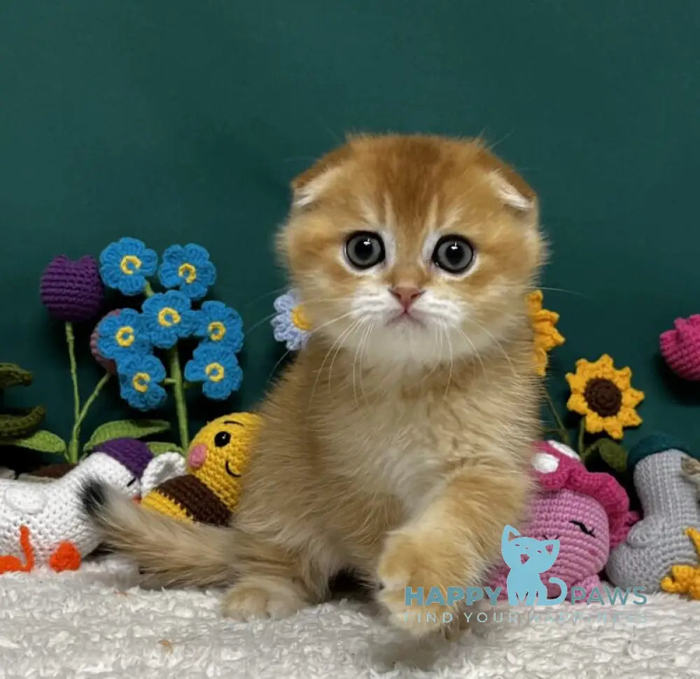 Ares is a distinguished Scottish Fold male with a striking black golden chinchilla coat. Known for its unique folded ears and plush, dense fur, this breed combines an affectionate temperament with a calm, intelligent nature. His distinctive coloring highlights the breed's luxurious texture, making him an exceptional companion for those appreciating both beauty and character in a pet. Ideal for knowledgeable cat enthusiasts seeking a loyal and gentle feline presence.