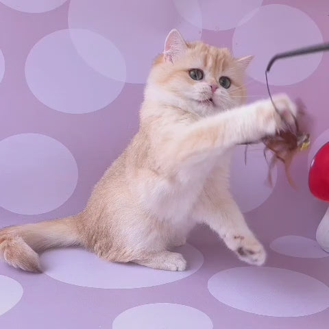 Ariel is an exquisite female British Shorthair displaying the rare chocolate golden chinchilla coloration. This striking coat pattern features warm chocolate undertones beautifully complemented by golden highlights, creating a luxurious, shimmering appearance. British Shorthairs are renowned for their calm, affectionate temperament and robust health. Ariel combines the breed's characteristic round face, dense plush coat, and sturdy build with her distinctive coloring. She makes an ideal companion for families seeking a gentle, intelligent cat with minimal grooming demands compared to longer-haired breeds. Her chocolate golden chinchilla coat requires regular brushing to maintain its lustrous quality and showcase her unique markings.