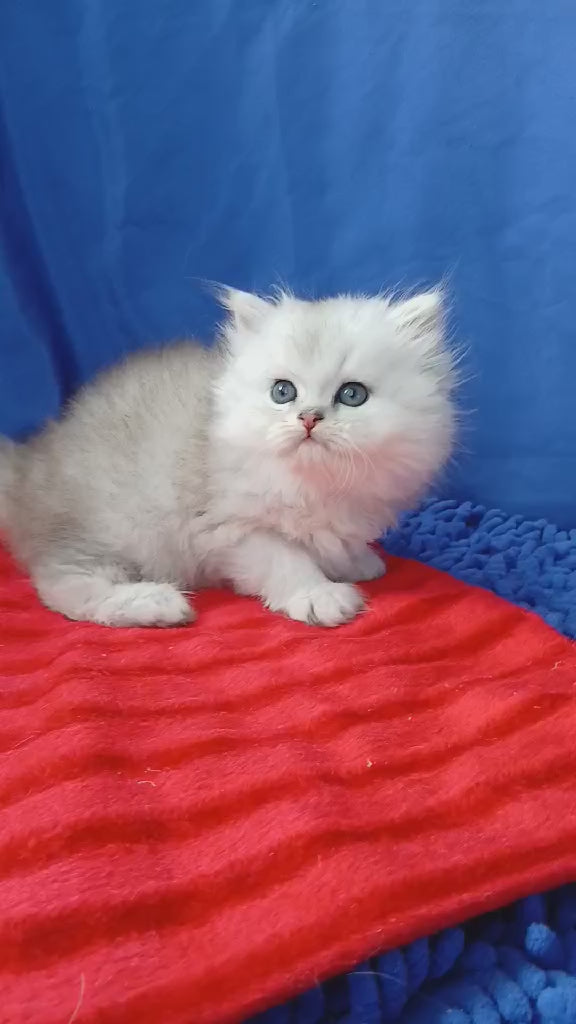Assol is a stunning Persian female showcasing the coveted black silver shaded coat pattern. This exquisite coloring features deep black tipping over a luminous silver undercoat, creating a luxurious, multi-dimensional appearance that catches light beautifully. With the characteristic flat face, round eyes, and dense, flowing coat typical of premium Persians, Assol embodies breed excellence. Her calm, affectionate temperament makes her an ideal companion for dedicated owners who appreciate the breed's gentle nature and are prepared for regular grooming maintenance to keep her magnificent coat in pristine condition.