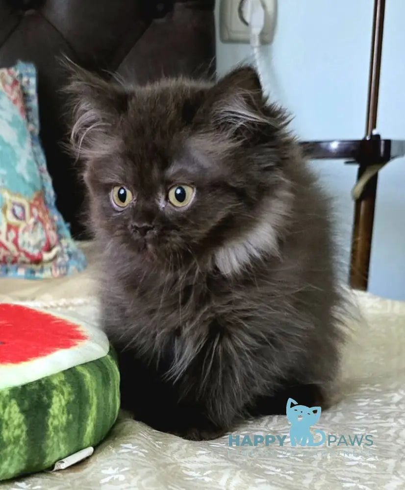 The Bagira Scottish Straight female in chocolate showcases a distinctive coat color paired with the breed’s signature straight ear posture. Known for their calm temperament and adaptability, this cat offers a harmonious blend of elegance and affectionate companionship. Ideal for households seeking a gentle yet engaging feline presence, the chocolate coat adds a warm, rich aesthetic to this sophisticated breed.