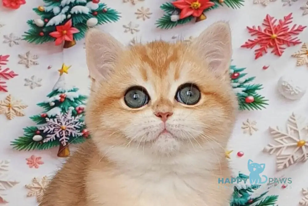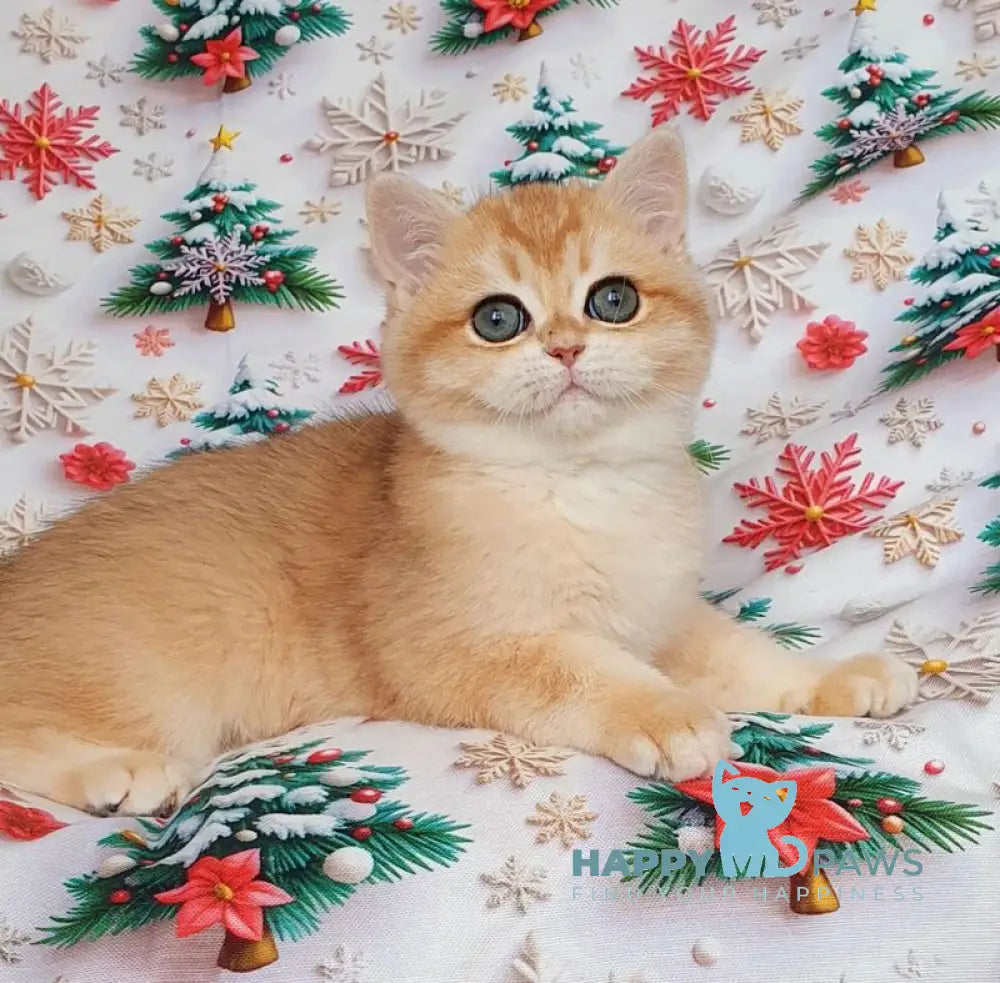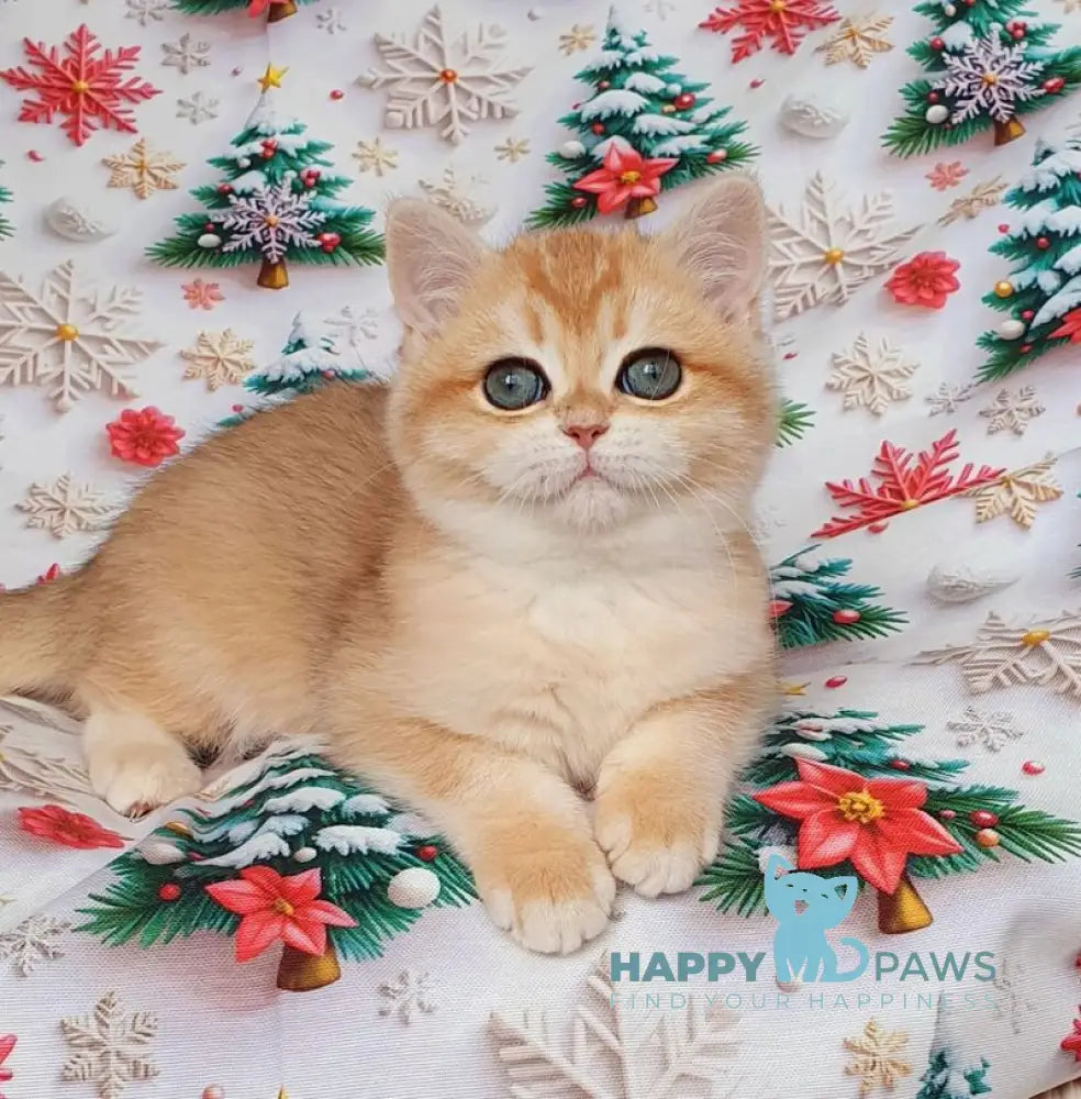 Bella is a British Shorthair female with a stunning black golden chinchilla coat that glows in the light. Her plush fur and round, gentle features give her an irresistibly soft and charming look. Calm, affectionate, and quietly playful, she brings a warm and soothing presence to any home. Bella’s elegant coloring makes her truly unforgettable.