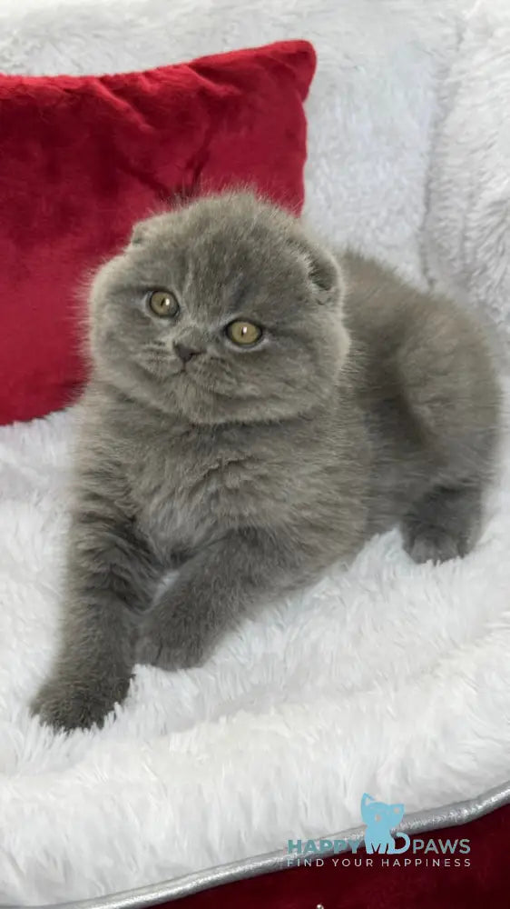 Benny is a distinguished Scottish Fold male with a striking blue coat, showcasing the breed’s signature folded ears and round, expressive eyes. Known for their calm and affectionate nature, Scottish Folds make devoted companions. Benny’s unique appearance combined with his gentle temperament makes him an excellent choice for those seeking a loving and elegant pet.