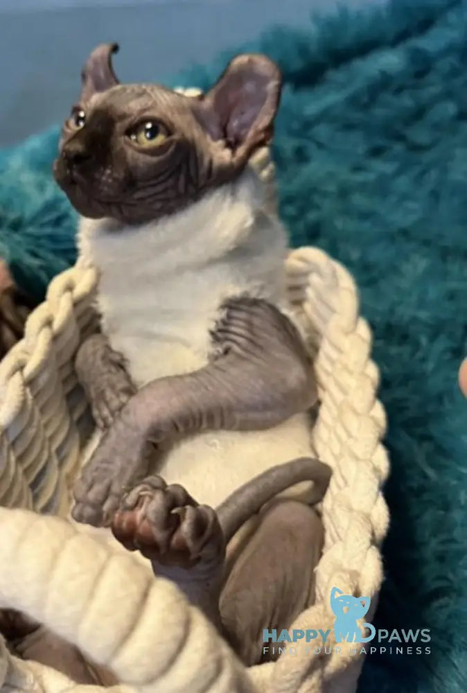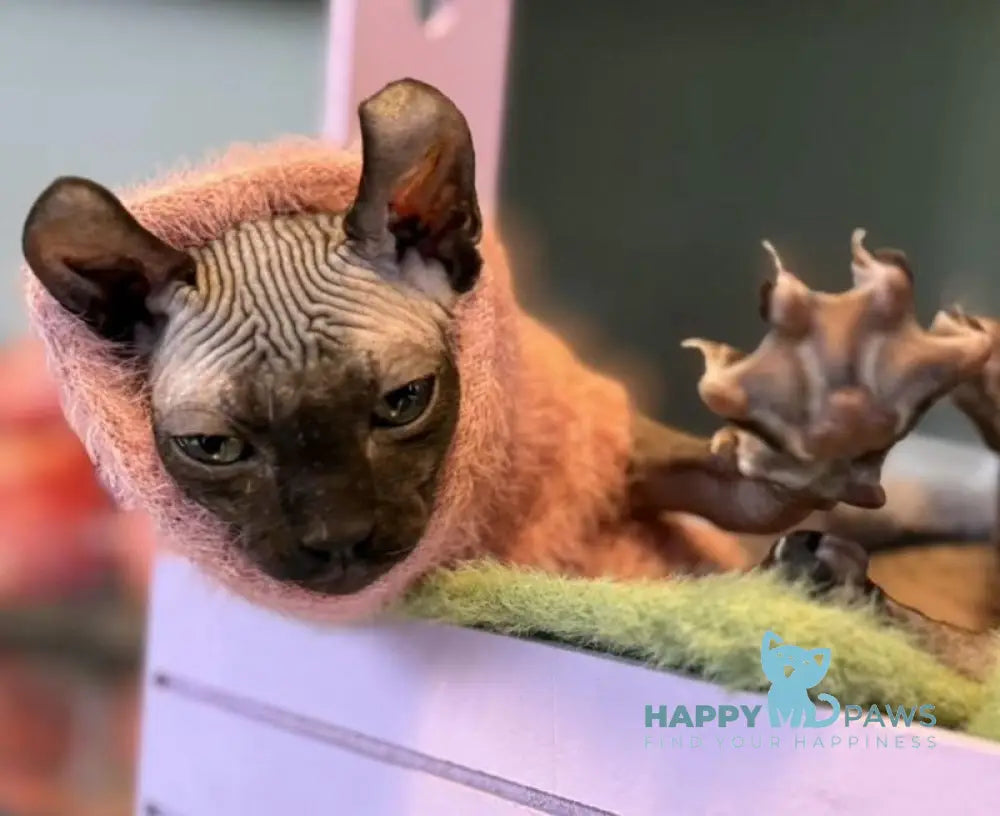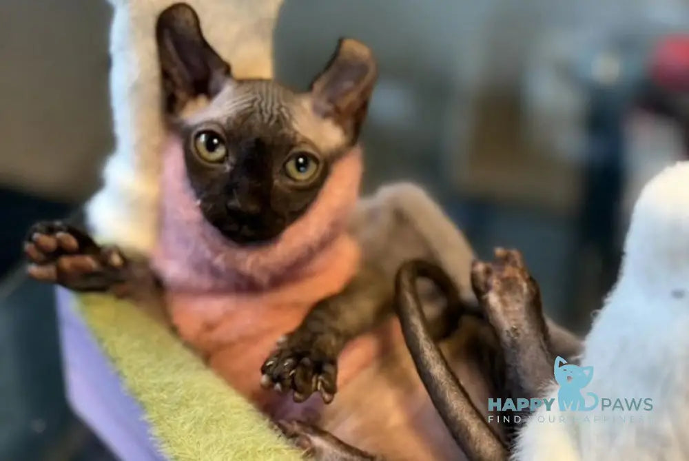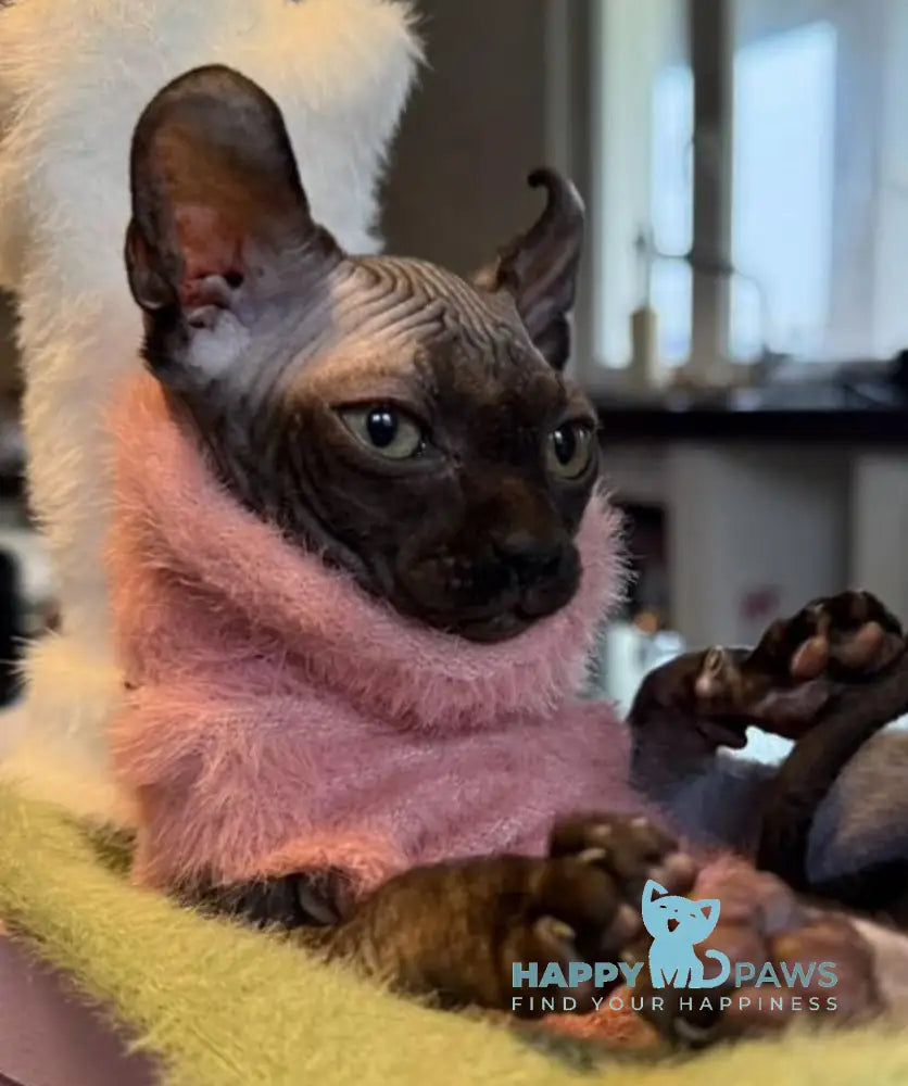 Bobby Elf Male, Black Meet your new feline companion—a striking black male kitten with the distinctive charm of the Bobby Elf breed. Known for their alert, intelligent nature and playful temperament, Bobby Elf kittens make engaging, affectionate pets for experienced cat owners. This young male displays the breed's characteristic features and vibrant personality. Ensure proper socialization, enrichment, and veterinary care to support healthy development. A rewarding addition for those seeking an active, interactive cat with unique appeal.