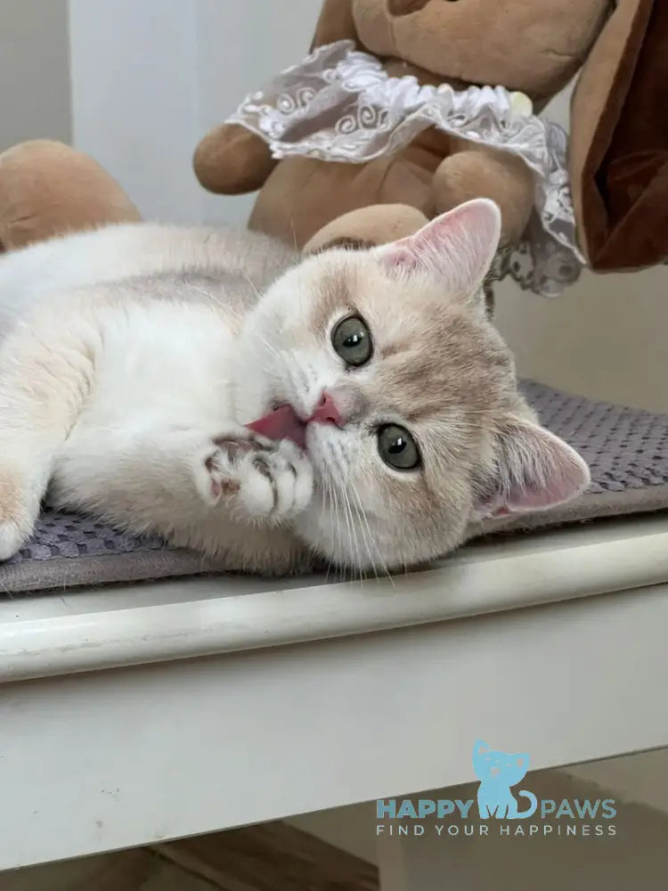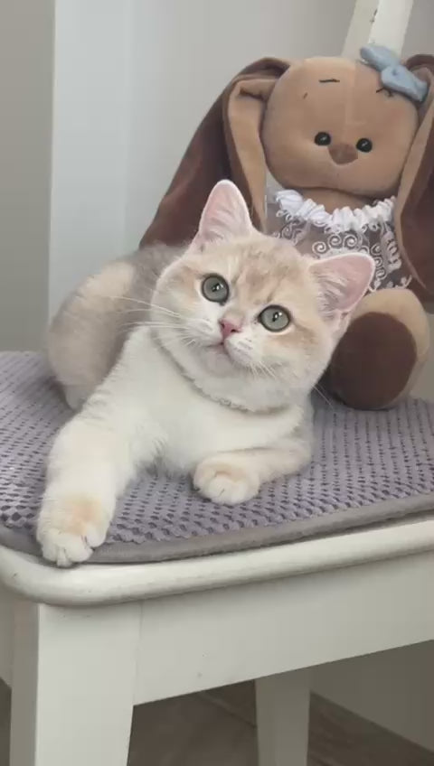 Meet Pamella, an exquisite British Shorthair kitten with a stunning blue golden chinchilla coat. This rare coloration features delicate silver-tipped fur with warm golden undertones, creating a luminous, ethereal appearance. Pamella embodies the breed's hallmark traits: a robust, muscular build, round face with full cheeks, and calm, affectionate temperament. British Shorthairs are known for their intelligence, independence, and gentle nature, making them ideal companions for families and individuals alike. Pamella's striking appearance and composed personality promise years of companionship and joy.