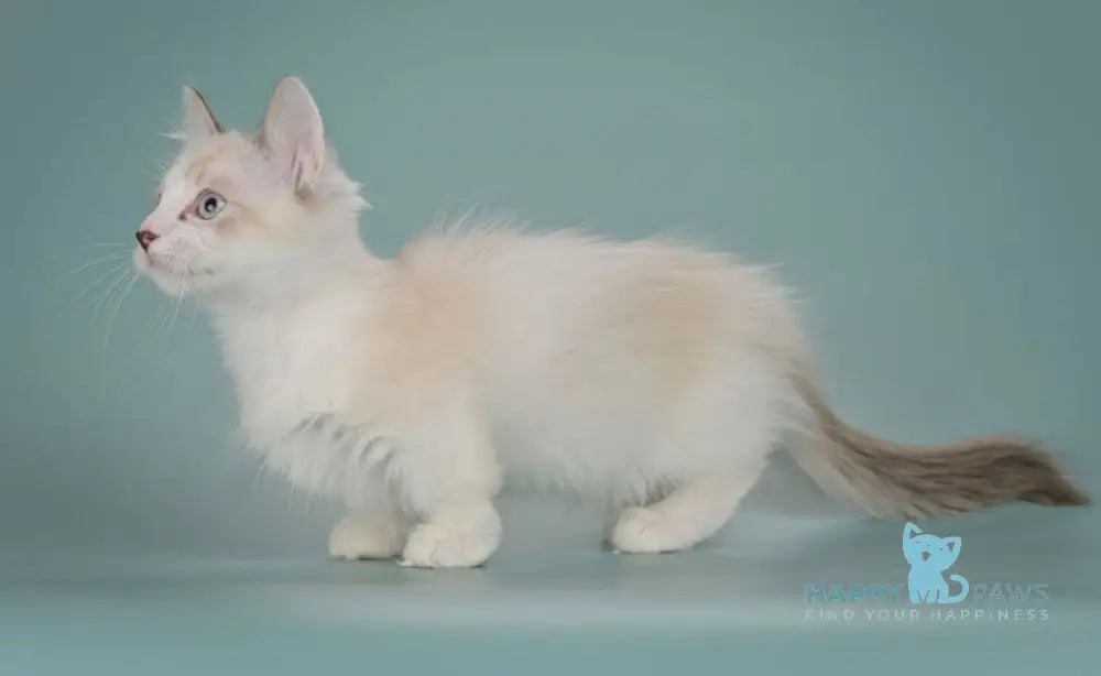 The Borisfen Munchkin male, black pointed with white, is a distinctive cat breed known for its short legs and striking color pattern. This unique coloration combines a sleek black pointed coat with crisp white accents, enhancing its elegant appearance. Its compact stature and affectionate temperament make it an excellent companion for those seeking a friendly and visually captivating feline. Ideal for indoor living, this Munchkin's playful yet gentle nature adds charm and warmth to any home environment.