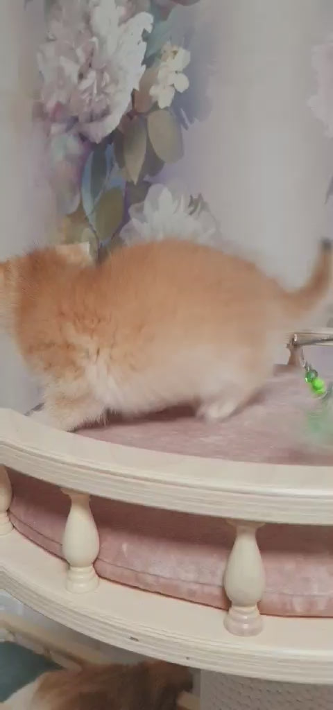 Businka is a British Shorthair beauty with a striking black golden chinchilla coat that shimmers in any light. Her gentle temperament makes her a calm and affectionate companion. With round eyes and plush fur, she carries the classic charm of the breed. She’s elegant, sweet, and irresistibly cuddly.