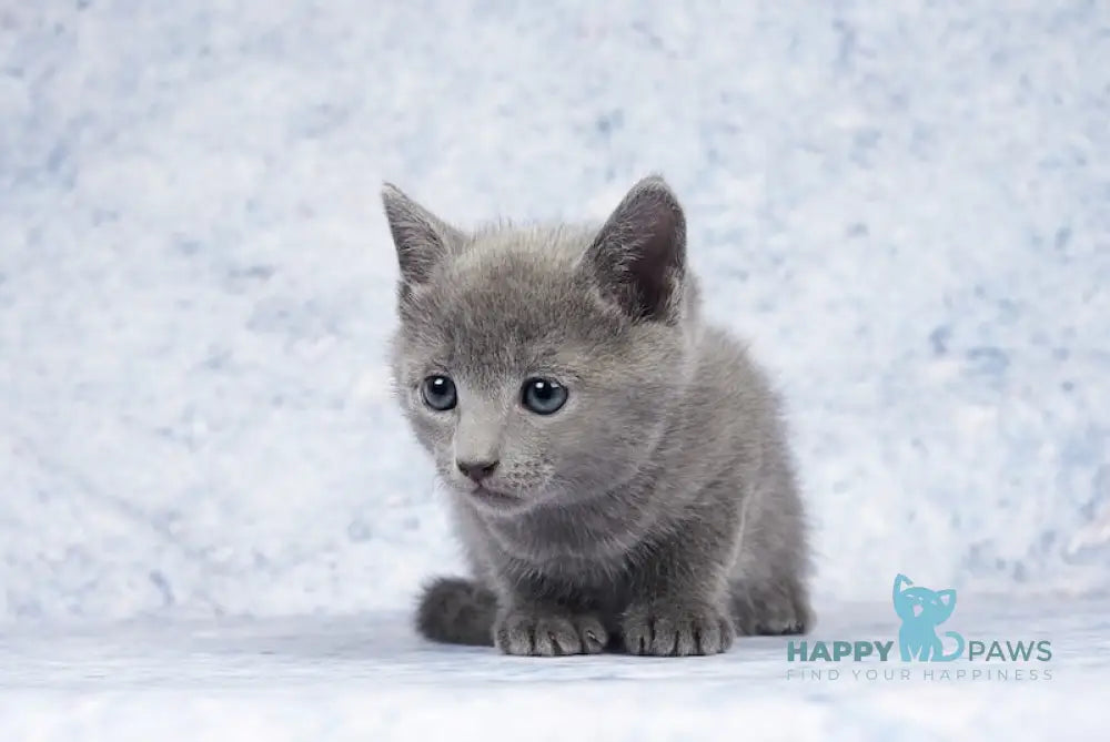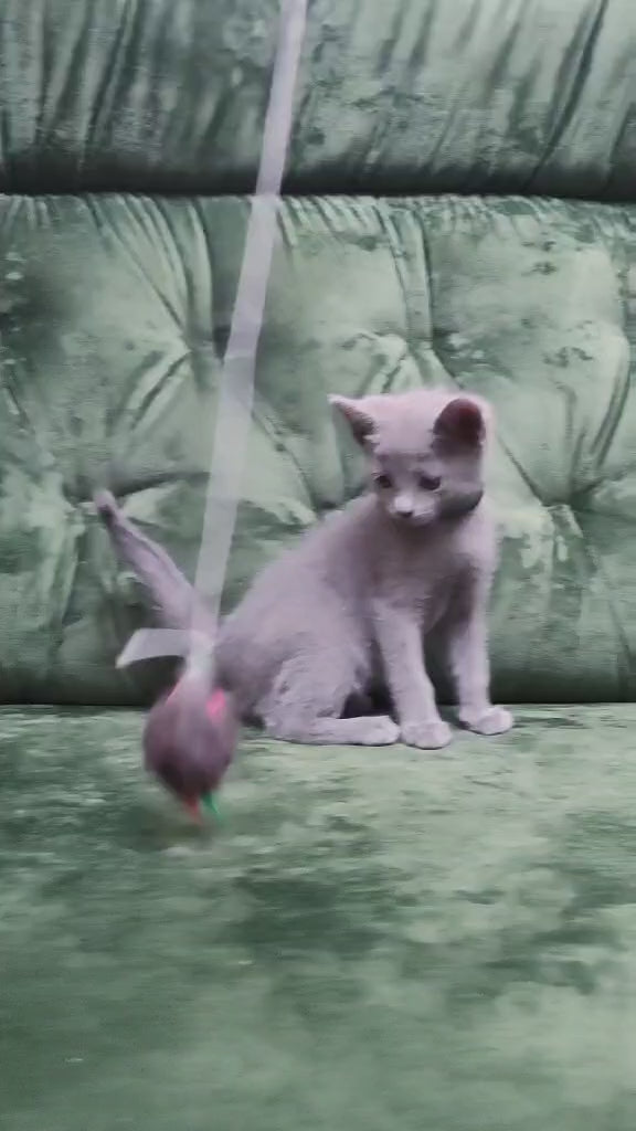 Caesar is a stunning Russian Blue male kitten with the breed's signature silvery-blue coat and striking green eyes. Known for their intelligence and gentle temperament, Russian Blues form deep bonds with their families while maintaining an independent streak. Caesar displays the breed's characteristic grace and playful curiosity. As an expert breeder offering this exceptional kitten, we ensure he's healthy, well-socialized, and ready to become a cherished companion. Russian Blues are ideal for families seeking a loyal, affectionate pet with minimal grooming needs and a calm, adaptable nature.