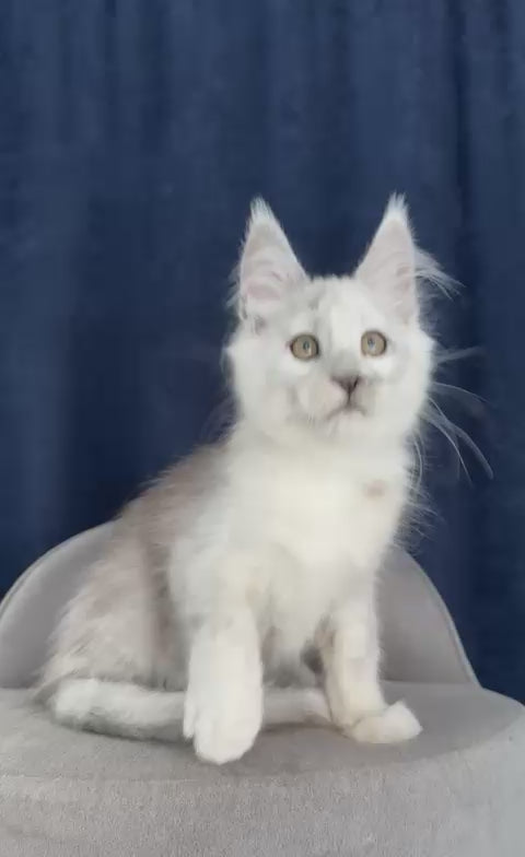 Caradoc is a stunning male Maine Coon with a luxurious black silver shaded coat that showcases the breed's signature elegance. Known for their impressive size and gentle temperament, Maine Coons make exceptional companions for families and individuals alike. Caradoc's striking coloring and majestic appearance embody the breed's natural beauty. These intelligent, affectionate cats thrive in homes where they receive attention and space to explore. Perfect for those seeking a loyal, playful feline friend with a distinctive look and wonderful personality.