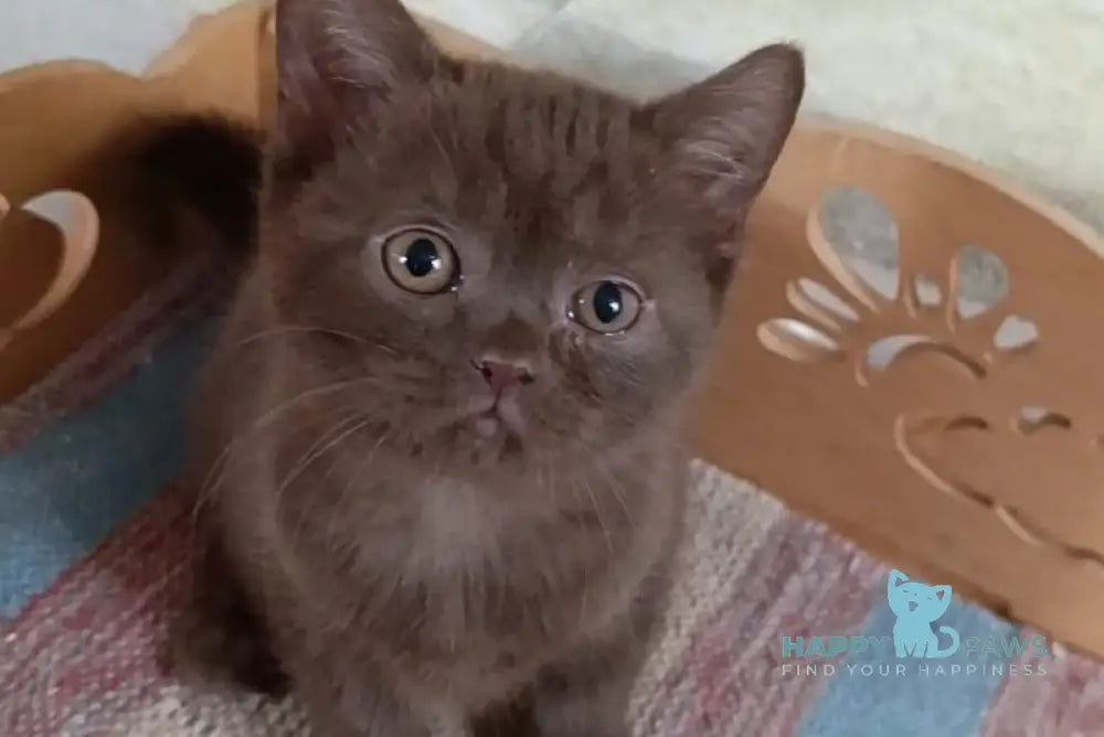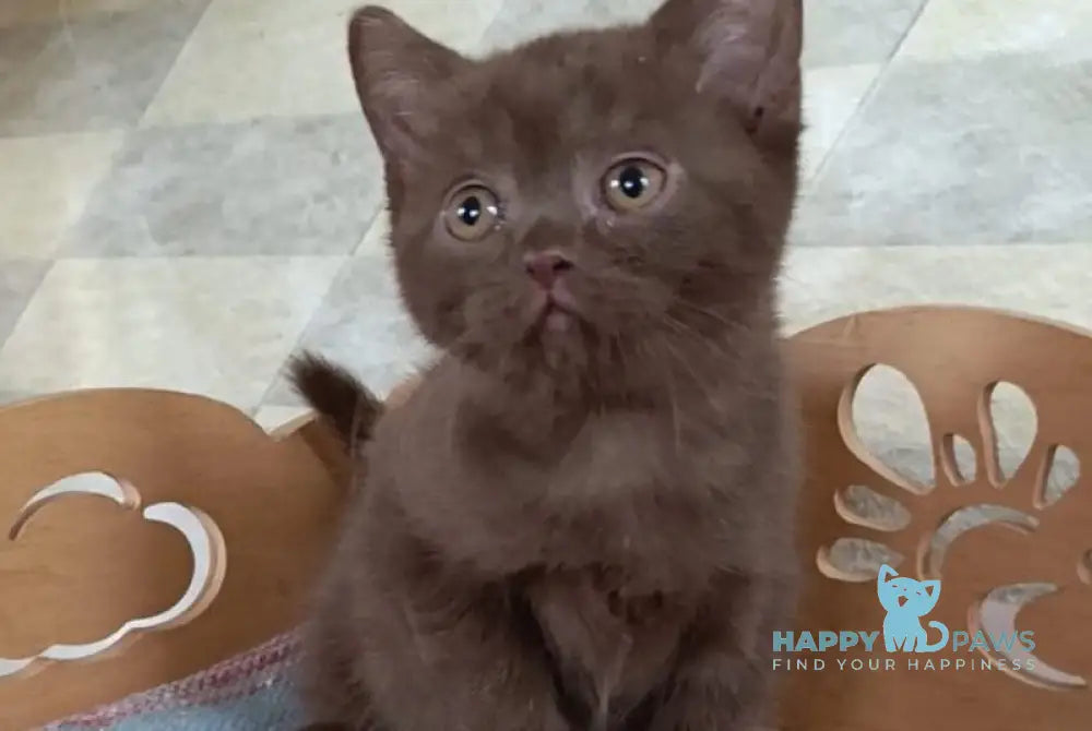 Cassandra is a captivating female British Shorthair with a unique chocolate coat, showcasing the breed’s characteristic dense and plush fur. Known for her calm temperament and robust build, she makes an excellent companion for those seeking a loyal and affectionate pet. Cassandra’s balanced nature and low-maintenance grooming needs highlight the breed’s suitability for both families and experienced cat owners looking for a distinguished and gentle feline presence.