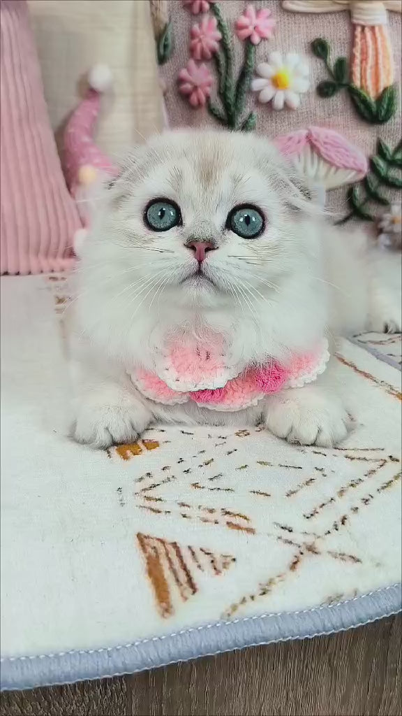 Meet Catalonia, an exquisite Scottish Fold female showcasing the rare chocolate silver shaded pointed pattern. This distinguished feline displays the breed's signature folded ears combined with a luxurious coat featuring rich chocolate tones beautifully blended with silver shading and elegant point coloration. Scottish Folds are renowned for their gentle temperament, adaptability, and affectionate nature, making them ideal companions for discerning cat enthusiasts. Catalonia's striking appearance and calm demeanor promise a rewarding addition to any home seeking a premium, well-bred feline companion.
