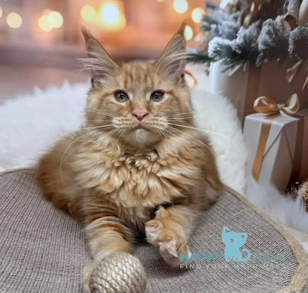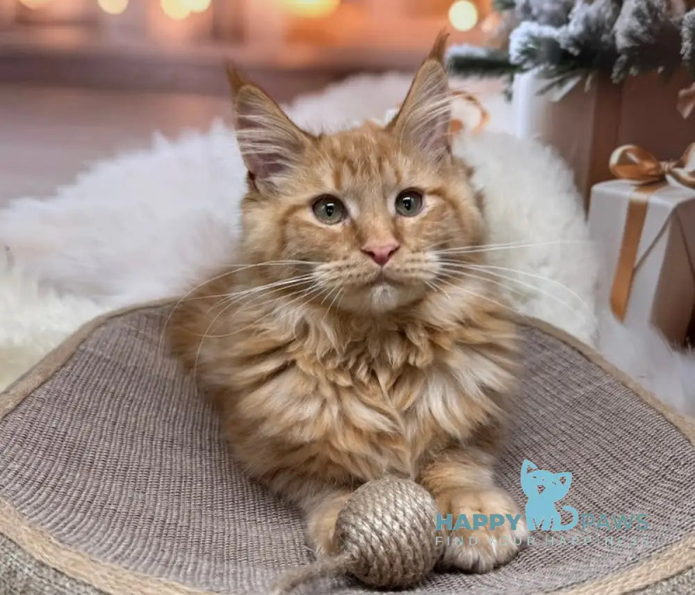 Meet Catu, a striking red Maine Coon male kitten with the breed's signature robust build and intelligent temperament. Maine Coons are renowned for their gentle, sociable nature and impressive size, making them exceptional family companions. Catu's vibrant red coat showcases the classic coloring that highlights the breed's majestic features. These kittens develop into loyal, playful adults who thrive on interaction and enjoy both active play and quiet companionship. Ideal for households seeking an affectionate, intelligent feline with a distinctive personality and stunning appearance.