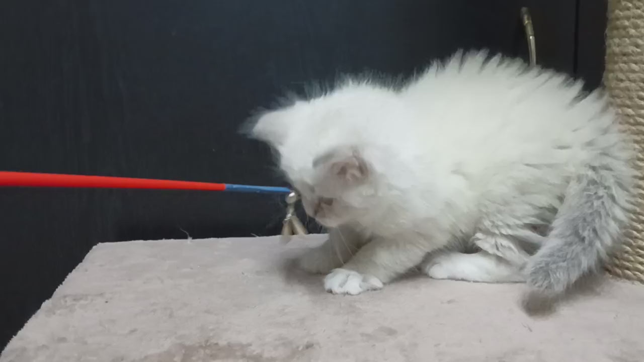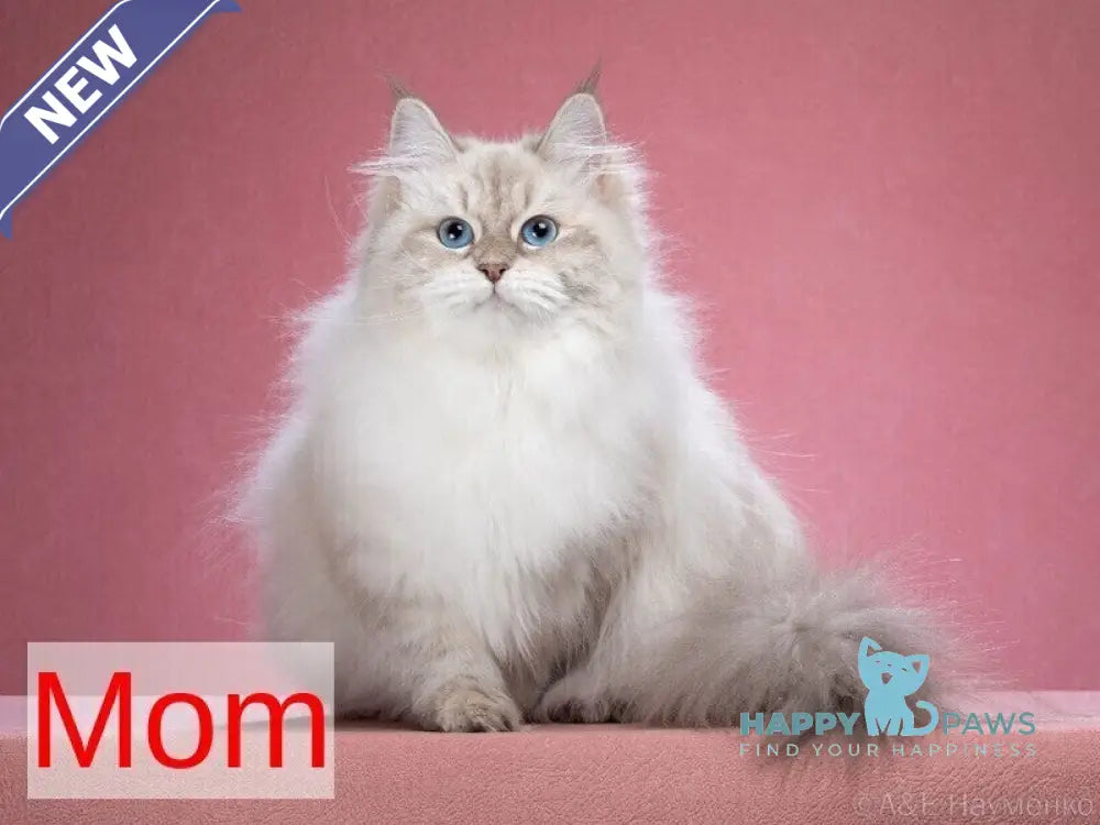 Cian Neva Masquerade represents the pinnacle of feline breeding excellence. This striking male exemplifies the breed's distinctive characteristics with his blue tabby pointed coloration and elegant bicolour pattern. The Neva Masquerade breed combines the robust build and cold-weather adaptation of Siberian cats with the striking colorpoint genetics that develop their signature facial masks and ear furnishings. Cian displays the breed's hallmark intelligence, playful temperament, and strong bonding capacity with his family. His luxurious semi-long coat requires regular grooming to maintain its pristine condition. Ideal for experienced cat enthusiasts seeking a companion with both physical presence and engaging personality.
