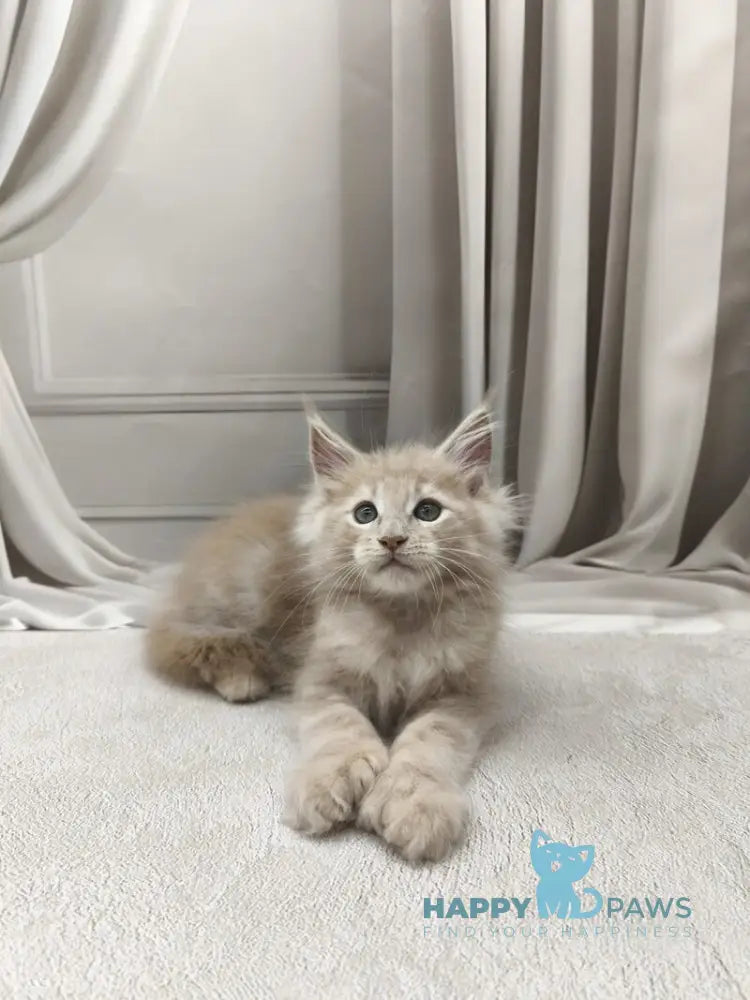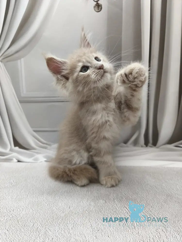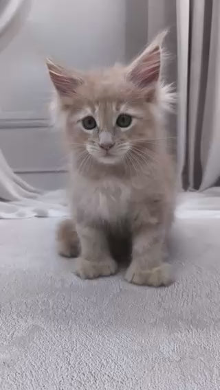 Meet Clark, a stunning Maine Coon male with the breed's signature magnificence. This cream tabby showcases the classic striped pattern that highlights his luxurious coat. As a polydactyl, Clark possesses the distinctive extra toes that add to his unique charm and appeal. Maine Coons are renowned for their gentle temperament, intelligence, and affectionate nature, making them exceptional companions. Clark's impressive size and striking appearance combined with the breed's playful, social personality create an ideal pet for families seeking a devoted, engaging feline friend.