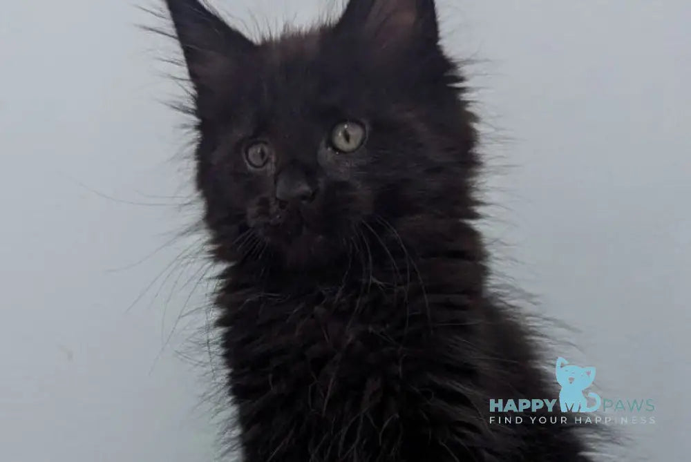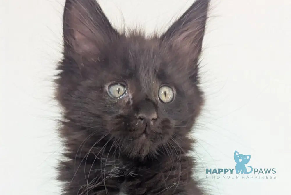 Cora is a stunning black female Maine Coon, renowned for her large size, luxurious coat, and gentle temperament. This breed is celebrated for its intelligence and sociability, making Cora an ideal companion for families or experienced cat enthusiasts. Her distinctive tufted ears and bushy tail highlight the classic Maine Coon appearance, while her calm and friendly nature ensures she adapts well to various living environments. Cora’s strong health and resilient genetics reflect the breed’s robust lineage, promising years of affectionate and engaging companionship.