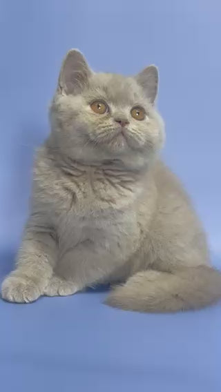 Cosmo is a stunning lilac British Shorthair male, showcasing the breed's signature dense, plush coat in a sophisticated pale gray-blue hue. This color variety is highly prized among British Shorthair enthusiasts for its elegant appearance and genetic rarity. Cosmo displays the breed's characteristic robust build, round face, and calm temperament, making him an excellent choice for families seeking a gentle, affectionate companion. British Shorthairs are known for their independent yet loving nature, adapting well to various living environments. With proper care, nutrition, and regular veterinary attention, Cosmo promises years of companionship and joy.