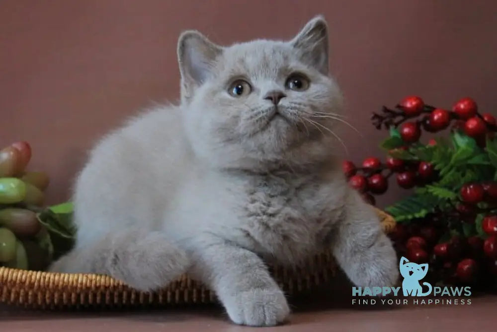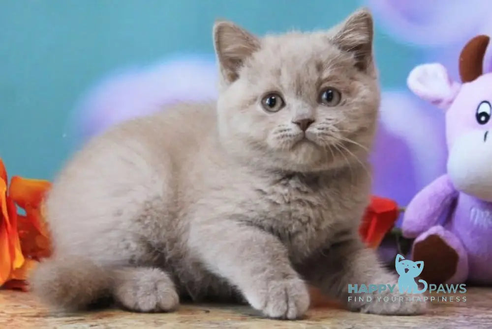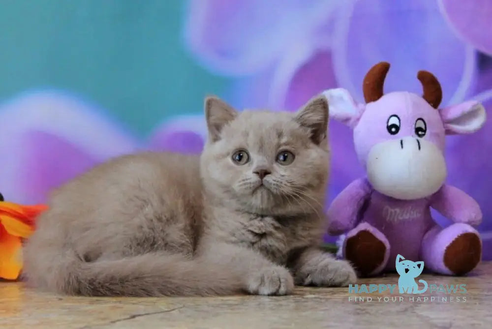 The Dayna British Shorthair female in lilac showcases the breed’s trademark plush coat and distinct round features with a refined lilac hue. Known for her calm and affectionate temperament, she offers a perfect companion for experienced cat enthusiasts seeking a balanced blend of elegance and gentle personality. This lilac British Shorthair maintains strong health traits characteristic of the breed, ensuring a loyal and low-maintenance pet. Ideal for those valuing both aesthetic appeal and a tranquil household presence.