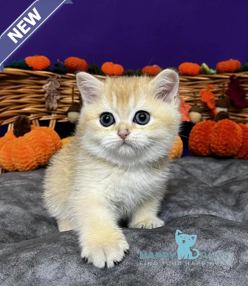 Demi is a Scottish Straight female with a stunning black golden chinchilla coat. Her fur shimmers with warm golden tones, and her calm, affectionate personality makes her a perfect companion. Graceful and gentle, Demi embodies both elegance and sweetness.