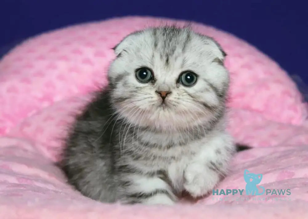 Den Scottish Fold male, black silver spotted tabby