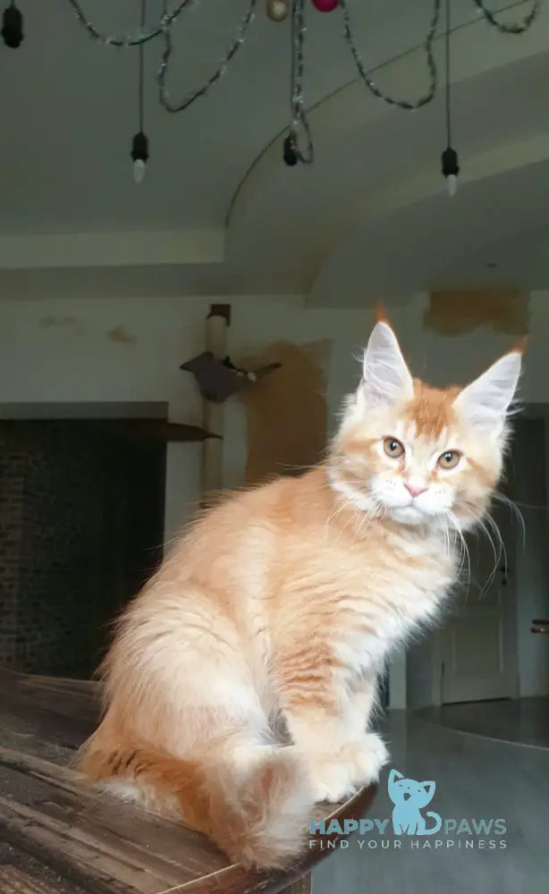 DiCaprio is a distinguished male Maine Coon with a striking red ticked tabby coat. Renowned for his robust physique and luxuriant fur, he exemplifies the breed’s signature combination of strength and elegance. His vibrant coloration highlights the intricate pattern typical of the ticked tabby, offering a unique and captivating appearance. Ideal for breeders and enthusiasts seeking a show-quality Maine Coon, DiCaprio combines exceptional pedigree with the breed’s characteristic gentle temperament.