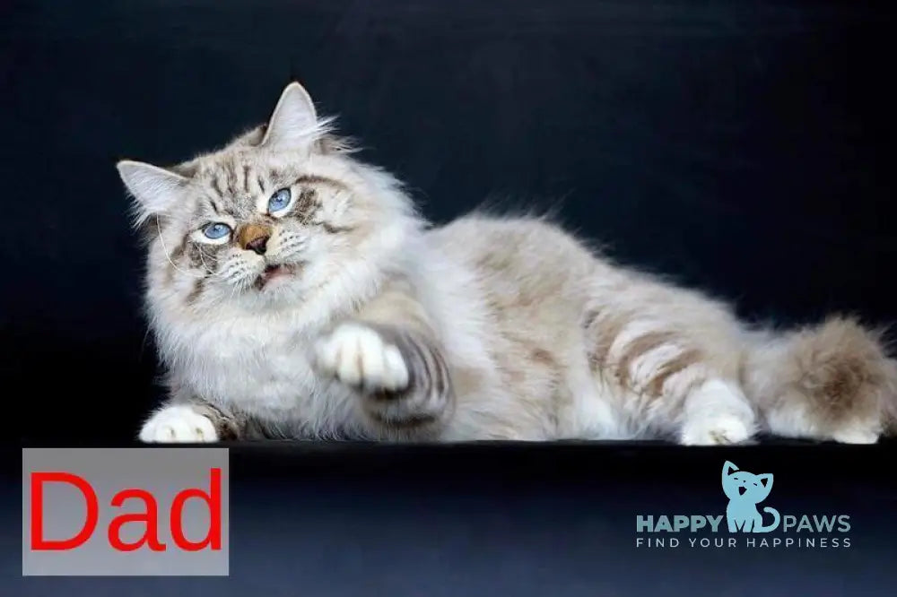 Don Juan represents the pinnacle of Siberian cat breeding excellence. This striking male showcases the breed's most coveted colorway—a luxurious black silver coat with distinctive white tabby pointed markings that create dramatic contrast across his face, ears, and extremities. His substantial build, muscular frame, and flowing semi-long coat exemplify authentic Siberian genetics. Known for their intelligence, loyalty, and gentle temperament, Siberian males like Don Juan make exceptional companions and breeding prospects. His superior pedigree and show-quality conformation make him an outstanding choice for discerning cat enthusiasts seeking authentic breed standards.