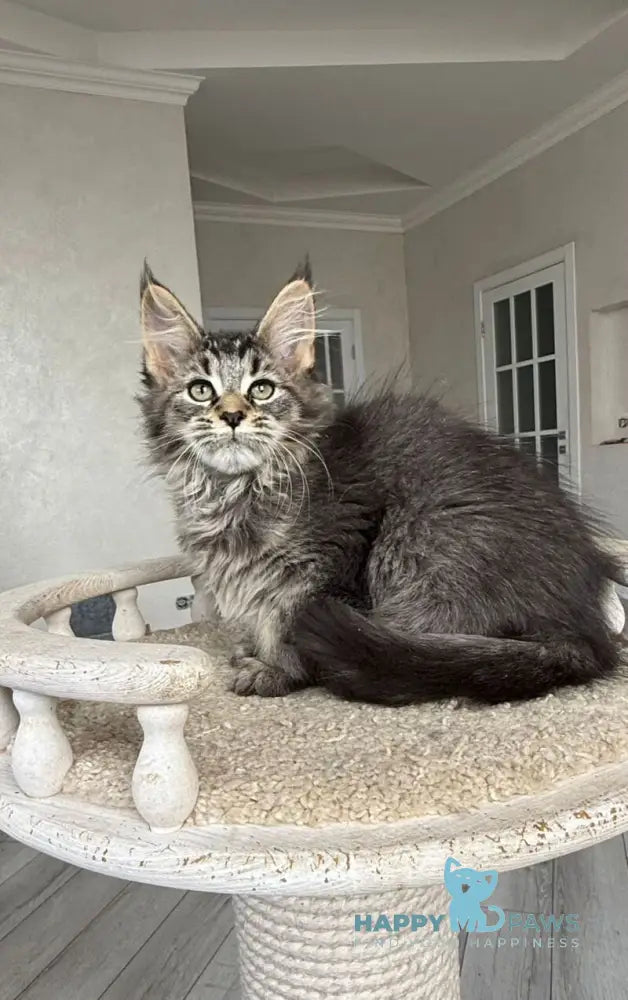 Dora is a striking Maine Coon female distinguished by her polydactyl trait, featuring extra toes that enhance her natural agility and grip. Her luxurious black and white coat exemplifies the breed’s signature thick, water-resistant fur, providing both beauty and resilience. Known for their intelligence and gentle demeanor, Maine Coons like Dora make poised companions, well-suited for families seeking an affectionate yet independent cat. Her unique paw structure and classic coloration make Dora an exceptional example of Maine Coon genetics and charm.