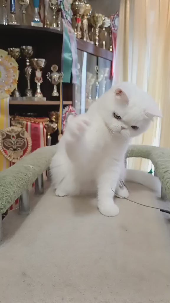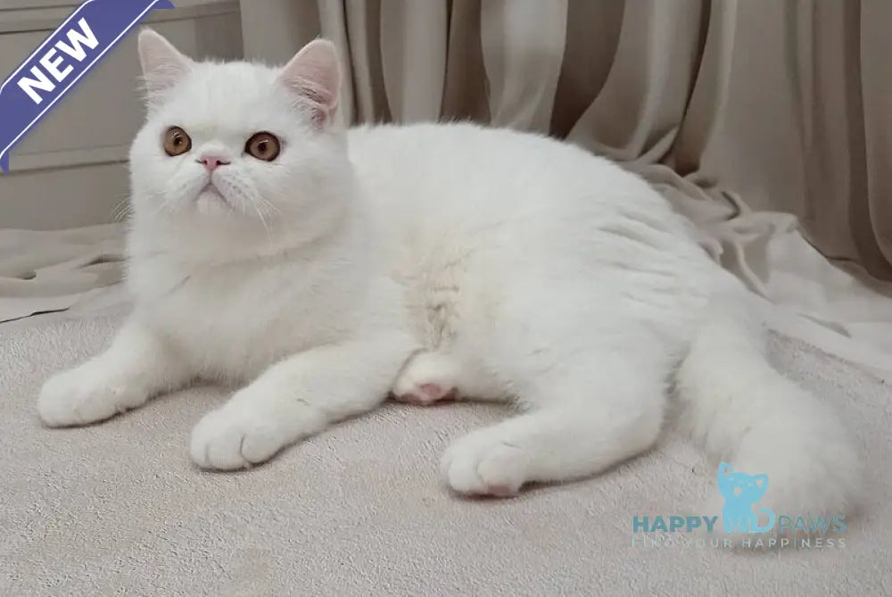 The Elton Exotic Male in white is a distinguished choice for those seeking a unique and elegant companion. Known for its striking white coat and robust build, this male exemplifies the Exotic breed’s signature blend of plush fur and a calm, affectionate temperament. Ideal for enthusiasts who value both appearance and temperament, the Elton Exotic offers a harmonious balance of beauty and companionship.