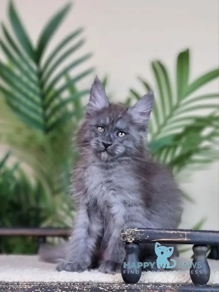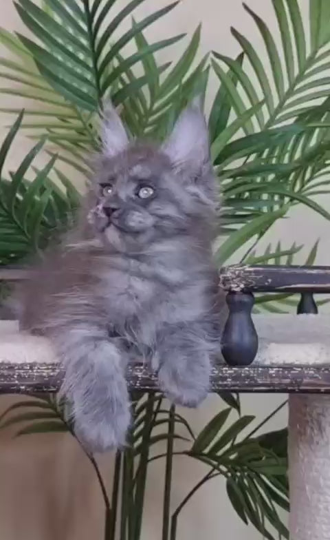 Emanuel is a striking blue silver Maine Coon male, embodying the breed's legendary size and gentle temperament. With his luxurious silver-tipped coat and commanding presence, he represents the finest qualities of this majestic feline. Maine Coons are renowned for their intelligence, playful nature, and affectionate personalities, making them exceptional companions for families and experienced cat enthusiasts alike. Emanuel's distinctive coloring and robust build showcase the breed's natural elegance and strength. As a pedigreed male, he carries the genetic traits that define Maine Coon excellence—from his tufted ears to his impressive stature and sociable disposition.