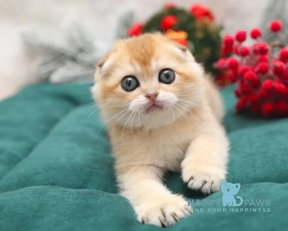 Meet Ester, an exquisite Scottish Fold female with a stunning black golden shaded coat. This breed is renowned for its distinctive folded ears and gentle temperament, making Ester an ideal companion for families and individuals alike. Her luxurious coloring showcases the breed's natural elegance, while her calm, affectionate nature ensures she'll bond closely with her new family. Scottish Folds are known for their adaptability to various living environments and their playful yet composed demeanor. Ester represents the finest qualities of this beloved breed—beauty, intelligence, and unwavering loyalty.