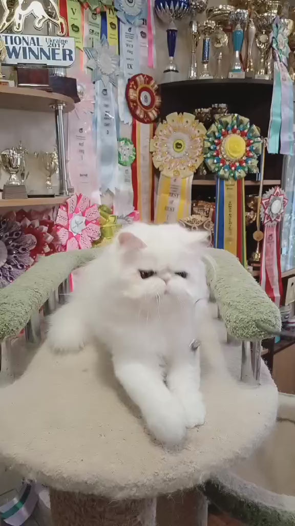 Ferdinanda is a purebred Persian female kitten with a pristine white coat, showcasing the breed’s signature long, luxurious fur and distinctive facial features. Known for their calm and affectionate nature, Persian cats like Ferdinanda make excellent companions in quiet, loving households. Her striking white fur requires regular grooming to maintain its softness and prevent matting, ensuring she always looks her best. Ideal for connoisseurs of the breed, Ferdinanda embodies the elegance and temperament that Persian enthusiasts appreciate.