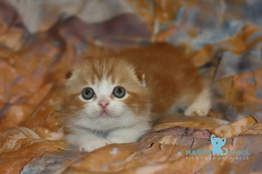 Ferrero Rocher is a Scottish Fold male with a rich red tabby bicolour coat. His folded ears and warm coloring give him a charming, expressive look. He has a friendly, affectionate personality with a playful side. Ferrero Rocher easily captures attention with his sweet nature.
