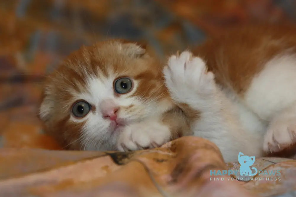 Meet Fire Fox, a stunning Scottish Fold male with a striking red tabby bicolour coat. This breed is renowned for its distinctive folded ears, creating an endearing owl-like expression that captures hearts instantly. Fire Fox displays the characteristic gentle temperament Scottish Folds are celebrated for—affectionate, intelligent, and adaptable to family life. His vibrant red tabby markings with bicolour patterning showcase the breed's natural beauty. Scottish Folds thrive as indoor companions, excelling in calm environments where they can bond closely with their owners. Whether you're seeking a devoted lap cat or an engaging feline friend, Fire Fox embodies the best qualities this beloved breed has to offer.