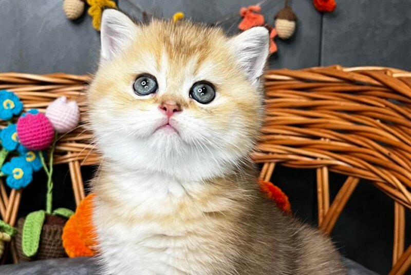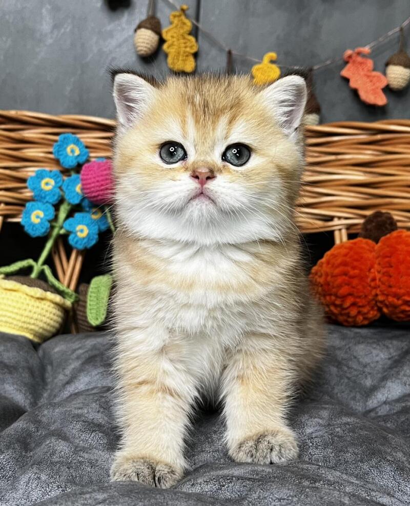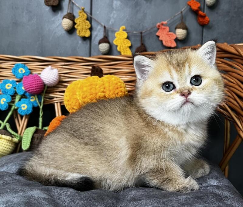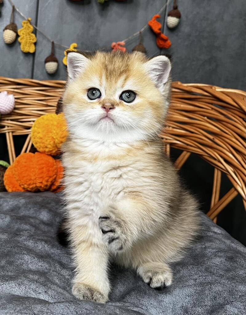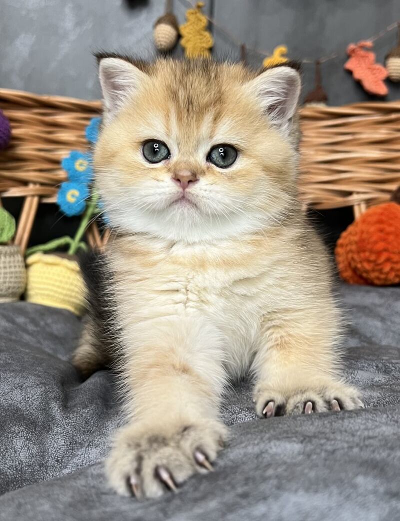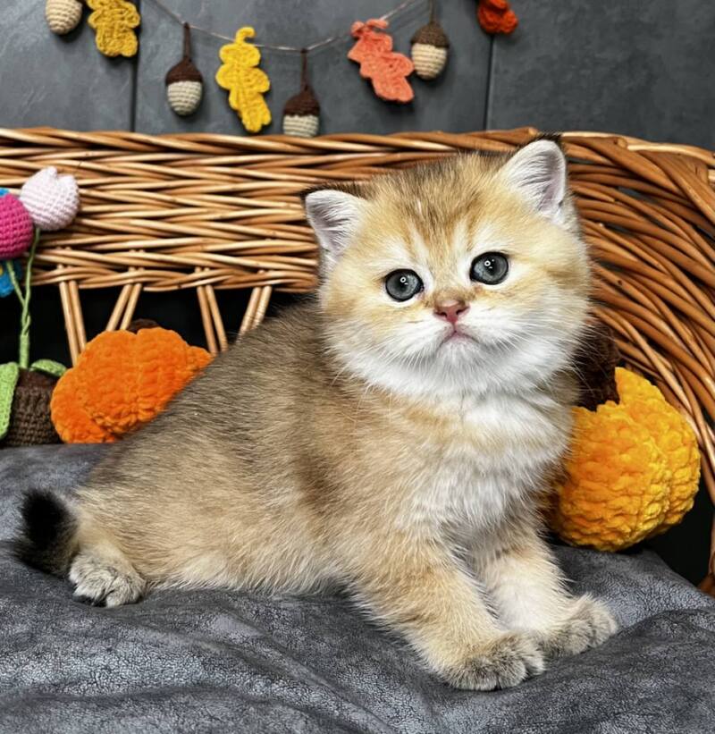 Flora is a stunning Scottish Straight female with a luxurious black golden shaded coat that showcases exceptional depth and richness. Her striking appearance combines the breed's characteristic rounded features with an elegant, well-proportioned build. This beauty displays the refined temperament Scottish Straights are known for—intelligent, affectionate, and adaptable to family life. Flora's distinctive coloring, with its sophisticated gradient from darker roots to golden highlights, makes her a truly captivating companion. Ideal for those seeking a graceful, even-tempered feline with striking visual appeal and a calm, devoted personality.
