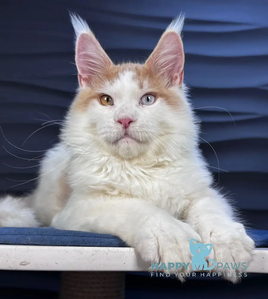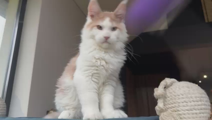 Meet Foxy, a stunning male Maine Coon kitten with a captivating cream tabby harlequin coat. This majestic breed is renowned for its impressive size, intelligence, and gentle temperament, making it an exceptional companion for families and experienced cat enthusiasts alike. Maine Coons are naturally sociable, playful, and adaptable to various living environments. Foxy's striking coloring and robust build promise a truly remarkable feline presence in your home. Prepare for a loyal, affectionate friend with the distinctive charm Maine Coons are celebrated for.