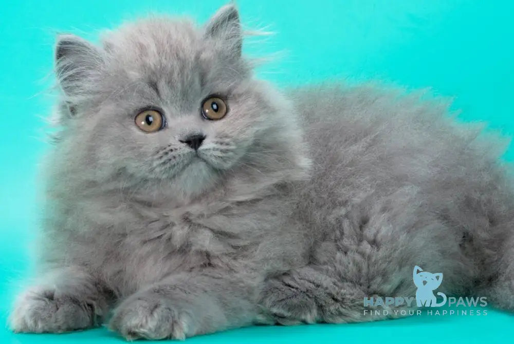 The Gatsby British Longhair male in blue features a plush, dense coat characteristic of the breed, combining the elegance of the British Longhair with a striking blue hue. This cat offers a calm and affectionate temperament, making him an excellent companion for households seeking a refined yet friendly feline. His robust build and gentle demeanor reflect the breed’s known health and stability, ensuring both beauty and resilience in one remarkable pet. Ideal for those who appreciate sophisticated looks paired with a balanced personality.