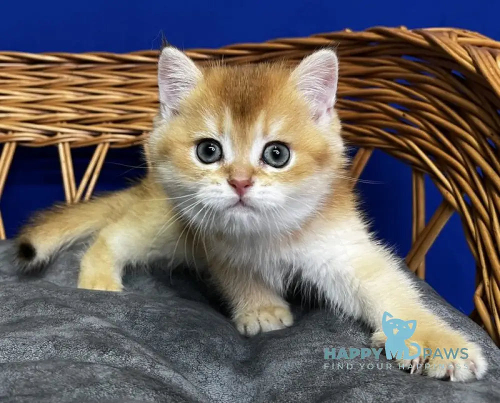 Giselle is a stunning Scottish Straight female showcasing the rare and highly coveted black golden chinchilla coat pattern. This exquisite coloration features deep black tipping over a luminous golden undercoat, creating a shimmering, multi-dimensional appearance that catches light beautifully. As a Scottish Straight, Giselle displays the breed's characteristic straight ears, rounded head, and compact, muscular build. Her striking appearance, combined with the Scottish Straight's renowned calm temperament and adaptability, makes her an exceptional choice for discerning feline enthusiasts. Giselle represents premium breeding standards and would make a distinguished addition to any home.
