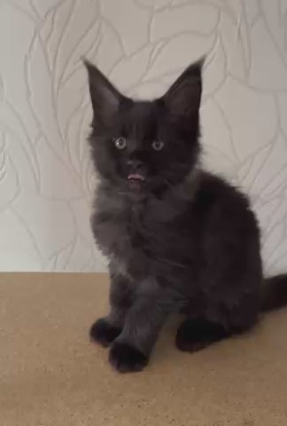 Meet Gizmo, a striking black Maine Coon male with the breed's signature intelligence and gentle temperament. Maine Coons are renowned for their impressive size, tufted ears, and luxurious long coats—Gizmo exemplifies these majestic qualities. This breed thrives on companionship and interactive play, making him an excellent choice for families seeking an engaging, affectionate feline companion. His dark coat showcases the natural beauty Maine Coons are prized for. Known for their dog-like loyalty and adaptability, Maine Coons like Gizmo integrate seamlessly into active households. Expect a devoted, playful personality paired with the calm demeanor this beloved breed is famous for.