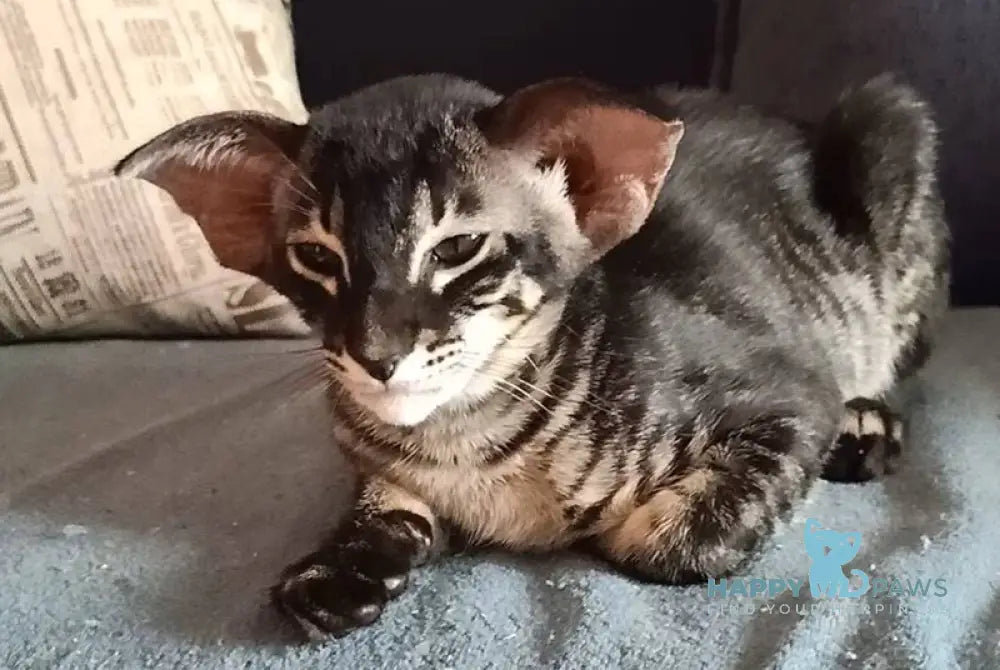 Harley is a distinguished Oriental Shorthair male with a striking black charcoal coat. Known for their sleek build and refined features, Oriental Shorthairs like Harley exhibit exceptional agility and intelligence. His glossy dark fur highlights his elegant silhouette, making him an ideal companion for those seeking a graceful, attentive, and interactive pet with a unique appearance.