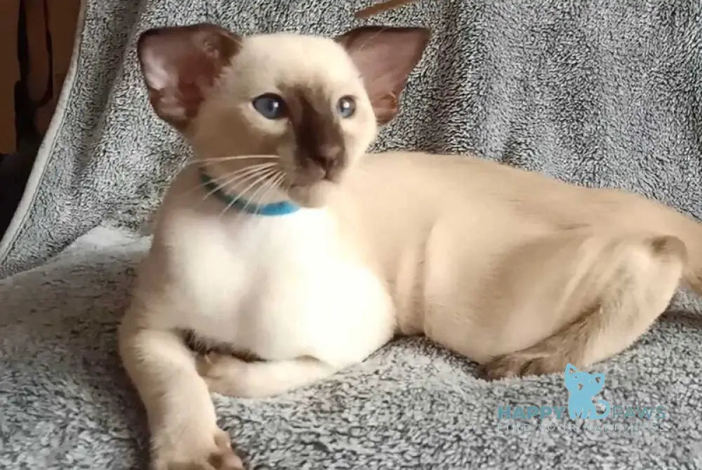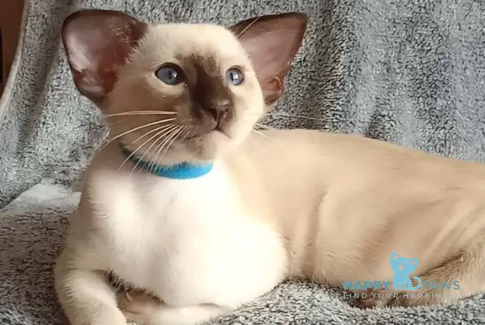The Henkok Siamese male with black pointed markings exemplifies the breed's elegant contrast of striking dark points against a creamy body. Known for their sleek build and vivid blue almond-shaped eyes, this male showcases classic Siamese refinement. His distinct color pattern not only highlights his pedigree but also complements his intelligent and social nature, making him an exceptional companion for those seeking a blend of beauty and personality rooted in Siamese tradition.
