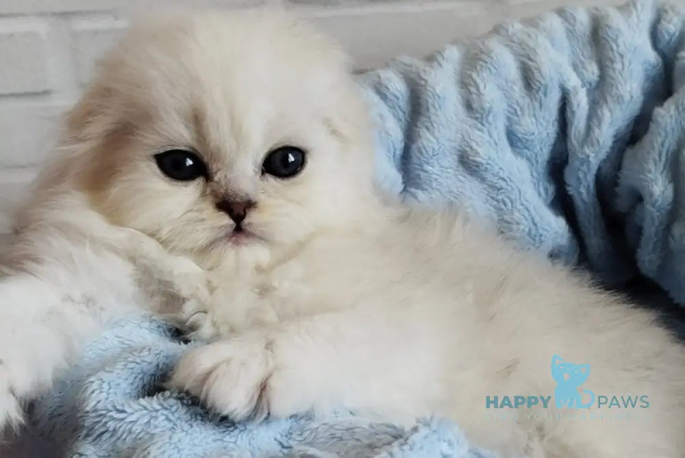 The Houston Scottish Fold male features a distinctive black silver shaded coat, combining elegance with the breed’s signature folded ears. Known for their calm and affectionate nature, this kitten offers a unique blend of striking appearance and gentle temperament, ideal for those seeking a refined and loving companion.