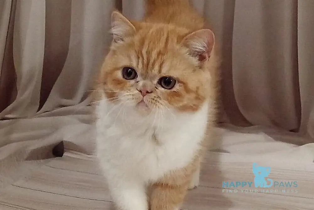 Ida Exotic female, red bicolour represents a striking feline specimen with distinctive coloring and breed characteristics. This female exotic cat displays the breed's signature compact build, rounded features, and plush coat in an elegant red bicolour pattern. Known for their calm, affectionate temperament, Exotic cats make devoted companions that thrive in indoor environments. The red bicolour marking adds visual appeal while maintaining the breed's characteristic sweet expression. Ideal for experienced cat enthusiasts seeking a low-maintenance yet engaging pet with a gentle disposition and minimal grooming demands compared to their Persian ancestors.