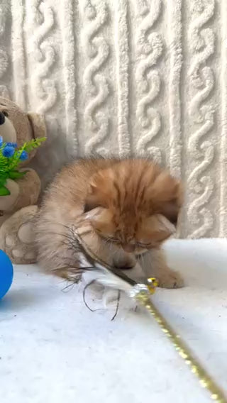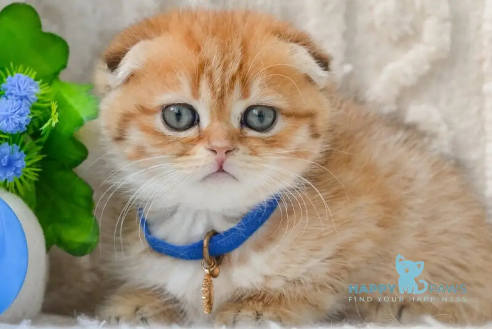 The Inky Scottish Fold male boasts a distinctive black golden spotted tabby coat, showcasing a unique blend of elegance and charm. Known for their signature folded ears, this breed combines a playful yet calm demeanor with an eye-catching appearance. Ideal for those seeking a companion with both striking looks and a gentle temperament, the Inky Scottish Fold adapts well to various living environments while offering loyal and affectionate companionship.