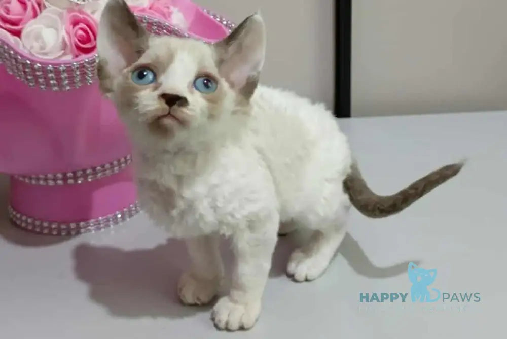 The Irbis Devon Rex male, seal pointed bicolour, features the breed’s signature soft, wavy coat and large expressive eyes. Its unique seal point coloration with contrasting white markings highlights its striking appearance. Known for an affectionate and intelligent nature, this cat combines a playful spirit with a sociable temperament, making it an excellent companion for experienced cat owners who appreciate distinctive breeds. Ideal for those seeking a visually captivating and engaging feline, the Devon Rex’s moderate size and lively personality suit various living environments.