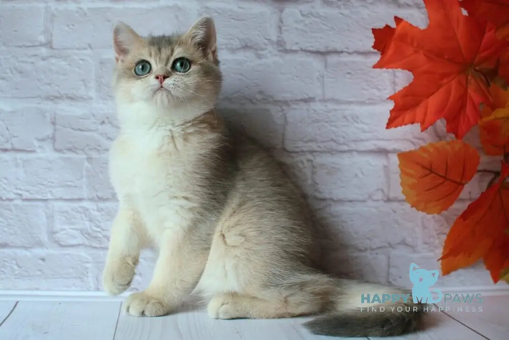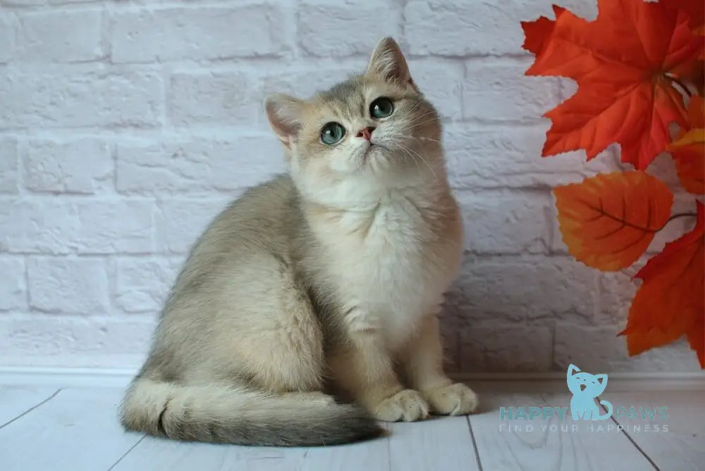 Jamal is a distinguished male British Shorthair with a unique blue golden shaded coat, showcasing the breed’s hallmark plush texture and sturdy build. His striking coloration highlights the breed’s classic round features and dense, plush fur, making him an excellent example for enthusiasts seeking a healthy, well-bred companion with a rare and elegant appearance. Ideal for those who appreciate the breed’s calm temperament combined with a visually captivating coat pattern.