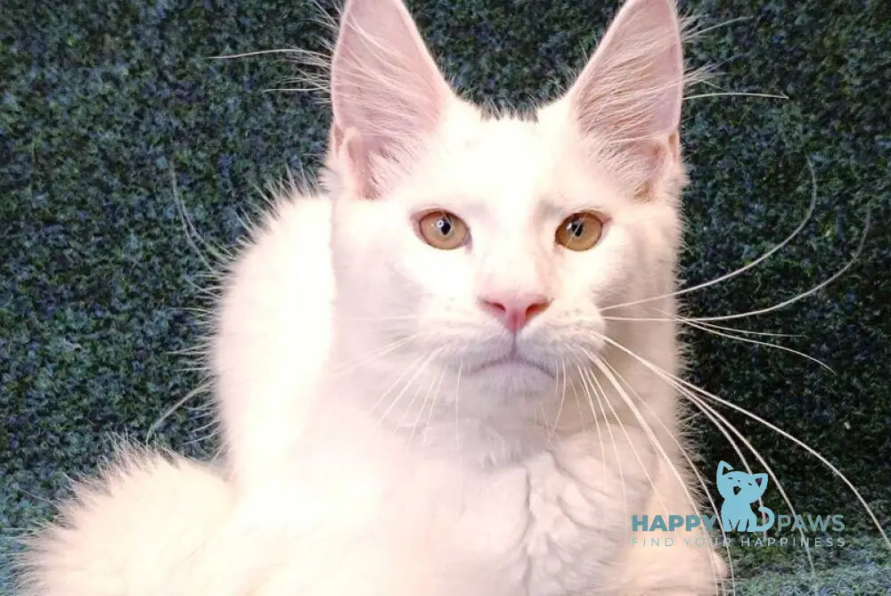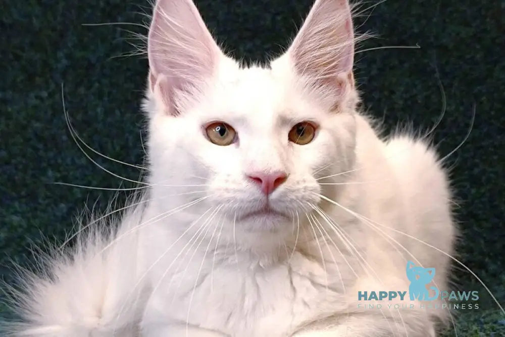 Jenna is a stunning white female Maine Coon, known for her large size and luxurious, silky fur. This breed is celebrated for its strong, muscular build and gentle, intelligent temperament, making Jenna an ideal companion for families and cat enthusiasts alike. Her distinctive tufted ears and bushy tail highlight her classic Maine Coon features, while her affectionate nature ensures she will bond closely with her humans. Jenna exemplifies the breed’s robust health and playful spirit, backed by expert breeding standards.