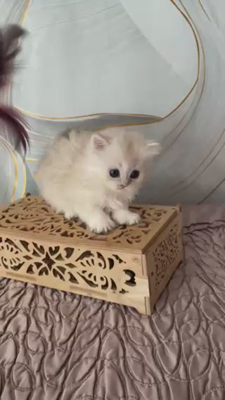 Jolie is a distinguished Scottish Straight female cat with a striking black silver shaded coat. Known for her calm and affectionate nature, she embodies the breed’s signature rounded features and plush, dense fur. Her unique coloring highlights the elegant shading typical of high-quality Scottish Straights, making her an exceptional companion for those seeking both beauty and a gentle temperament. Ideal for experienced cat lovers, Jolie offers a blend of charm and sophistication in a well-balanced feline.