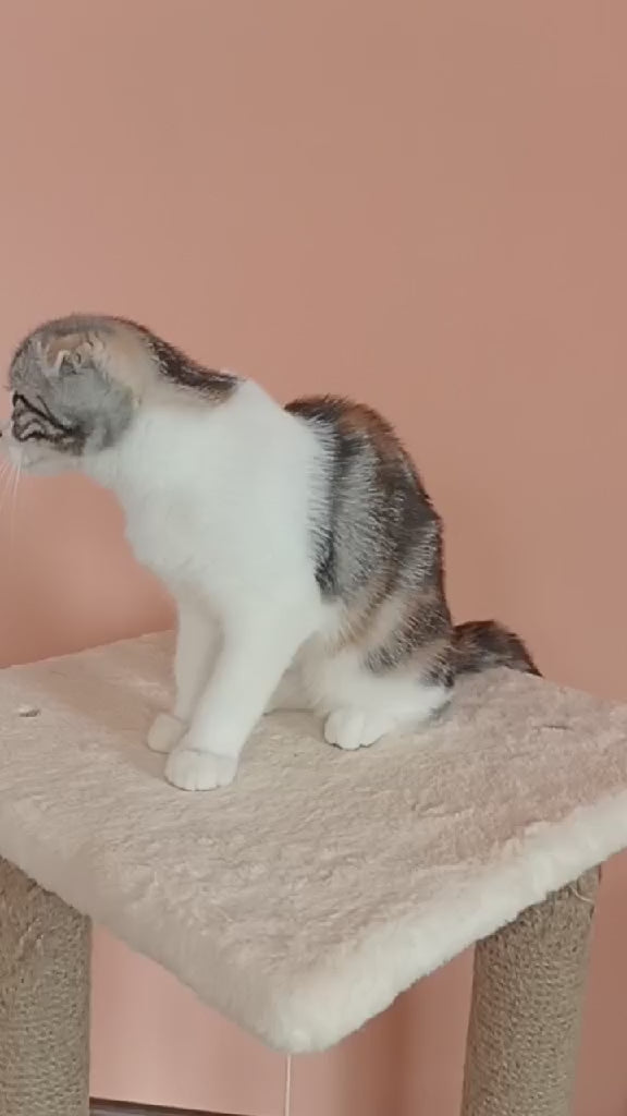 Julija is a female Scottish Fold kitten featuring a distinctive black tortie tabby bicolour coat. Known for their unique folded ears and gentle temperament, Scottish Folds like Julija make affectionate and adaptable companions. Her striking coloration adds to her charm, making her an exceptional addition for those seeking a calm and visually captivating feline friend.